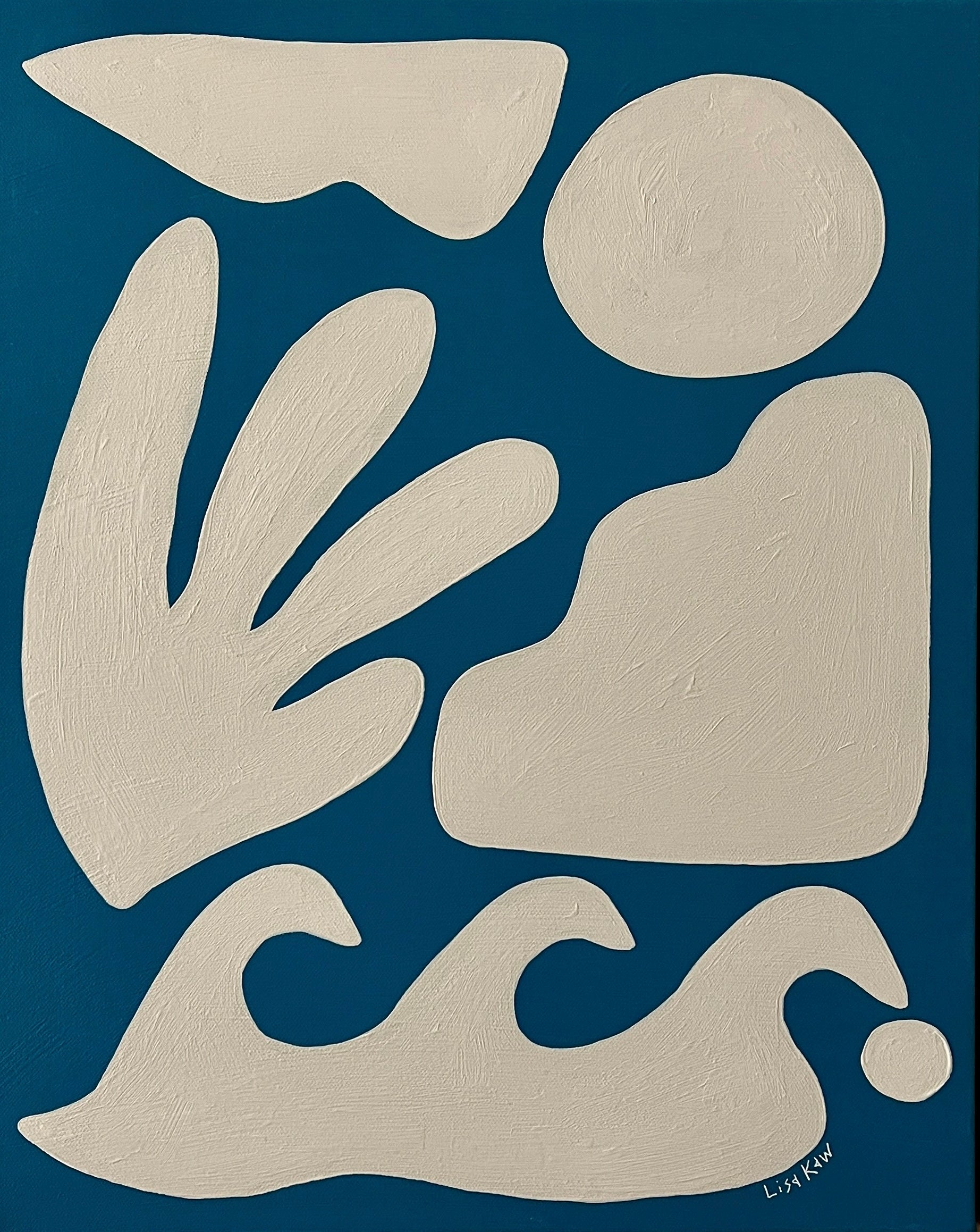 Totally tropical Lisa Kaw shares her love for nature and travel through her vibrant paintings. From her South Florida jungalow, she uses acrylic on canvas to transform the beauty around her into tangible one of a kind treasures. A minimalist at heart, Lisa thrives best when surrounded only by the blues and greens of the natural world and the curious melody of the rainforest chatter. Bali and the Big Island of Hawaii are her most sacred visited places. With a playful palette and a joyful spirit, Lisa Kaw creates work that simply and purely communicates the wonder of our natural world.