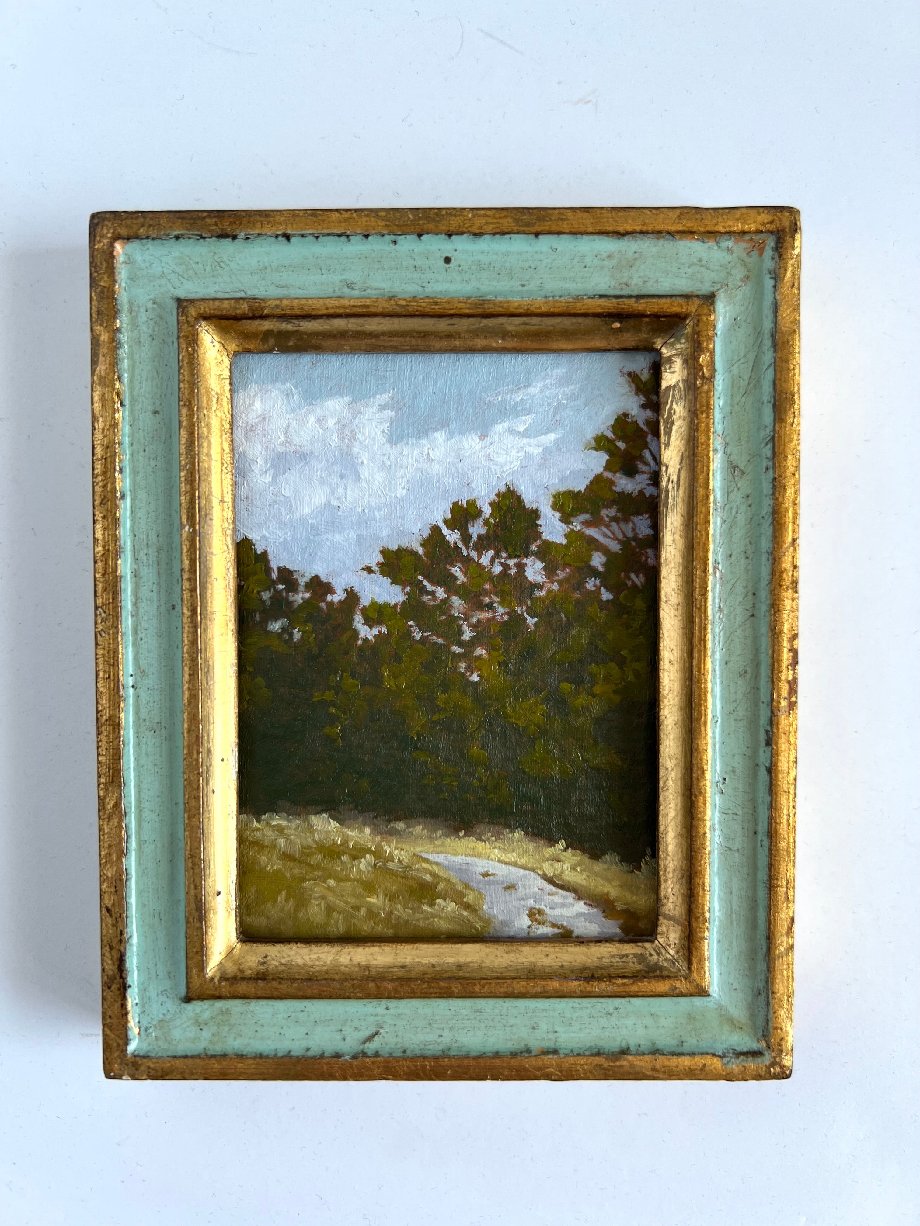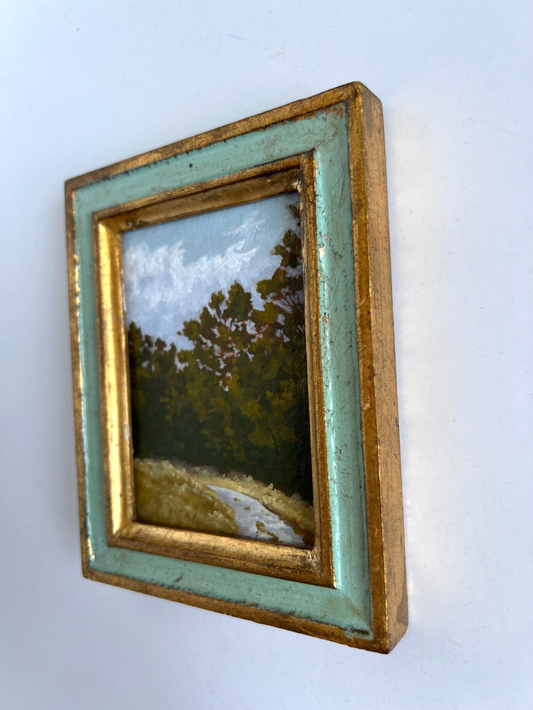 Jennifer was born in Jackson MS and moved to Nashville as a child. She enjoyed art as a child and painted with oils a bit as a teen, but ultimately went to MTSU to earn a degree in nutrition. Jennifer didn’t truly begin painting again until her children were in school full time, and started simply by painting pieces she wanted to hang in her own home. Discovering a love for vintage and antique frames (not to mention looking for these frames both in-person and online), she began pairing them with her favorite paintings. She paints primarily in acrylics on handmade paper. “I love the juxtaposition of a vintage/antique frame with the freshness of a modern landscape on textured handmade paper; the marriage of that tradition and history combined with the fresh clean colors in my pieces brings me joy.” She finds inspiration in clouds and trees and the hunt for the perfect vintage frame. Jennifer lives in Nashville with her husband and two boys.