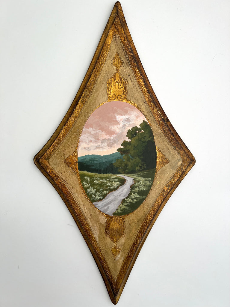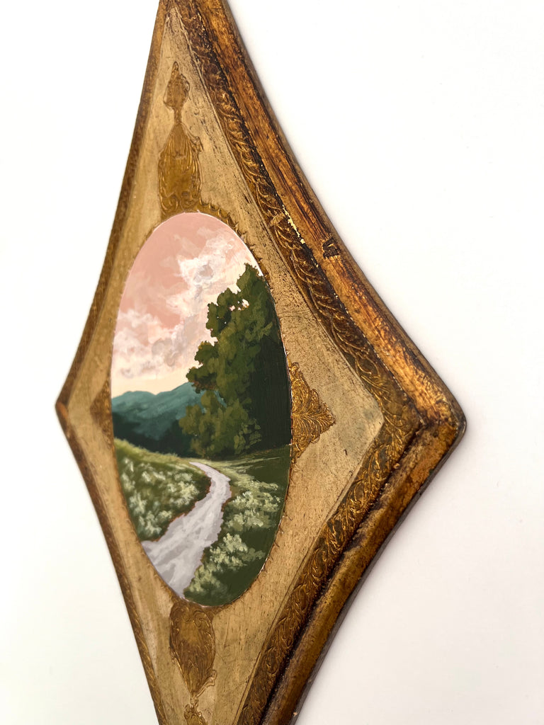Jennifer was born in Jackson MS and moved to Nashville as a child. She enjoyed art as a child and painted with oils a bit as a teen, but ultimately went to MTSU to earn a degree in nutrition. Jennifer didn’t truly begin painting again until her children were in school full time, and started simply by painting pieces she wanted to hang in her own home. Discovering a love for vintage and antique frames (not to mention looking for these frames both in-person and online), she began pairing them with her favorite paintings. She paints primarily in acrylics on handmade paper. “I love the juxtaposition of a vintage/antique frame with the freshness of a modern landscape on textured handmade paper; the marriage of that tradition and history combined with the fresh clean colors in my pieces brings me joy.” She finds inspiration in clouds and trees and the hunt for the perfect vintage frame. Jennifer lives in Nashville with her husband and two boys.