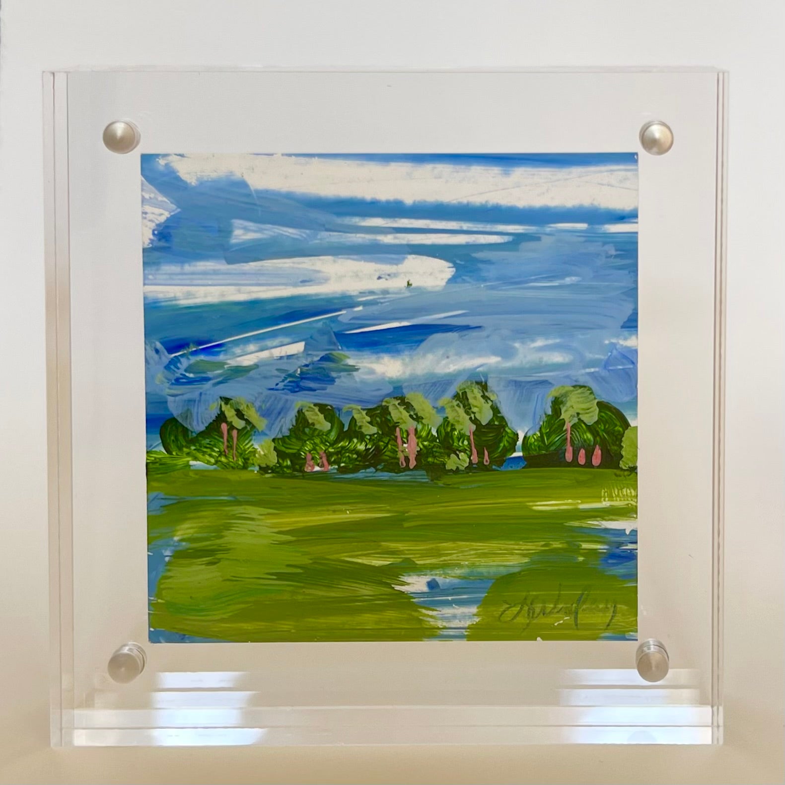acrylic on paper, in acrylic frame