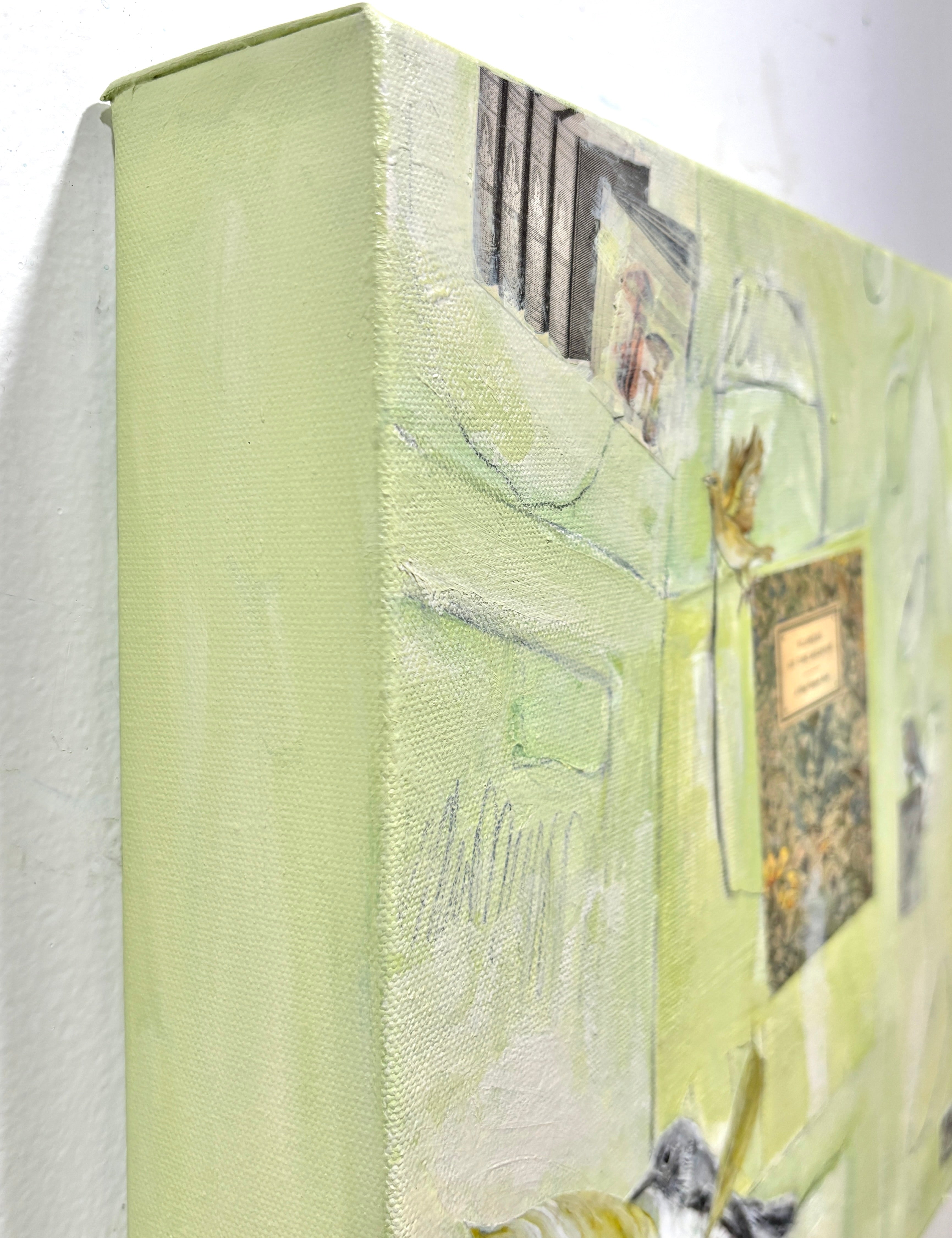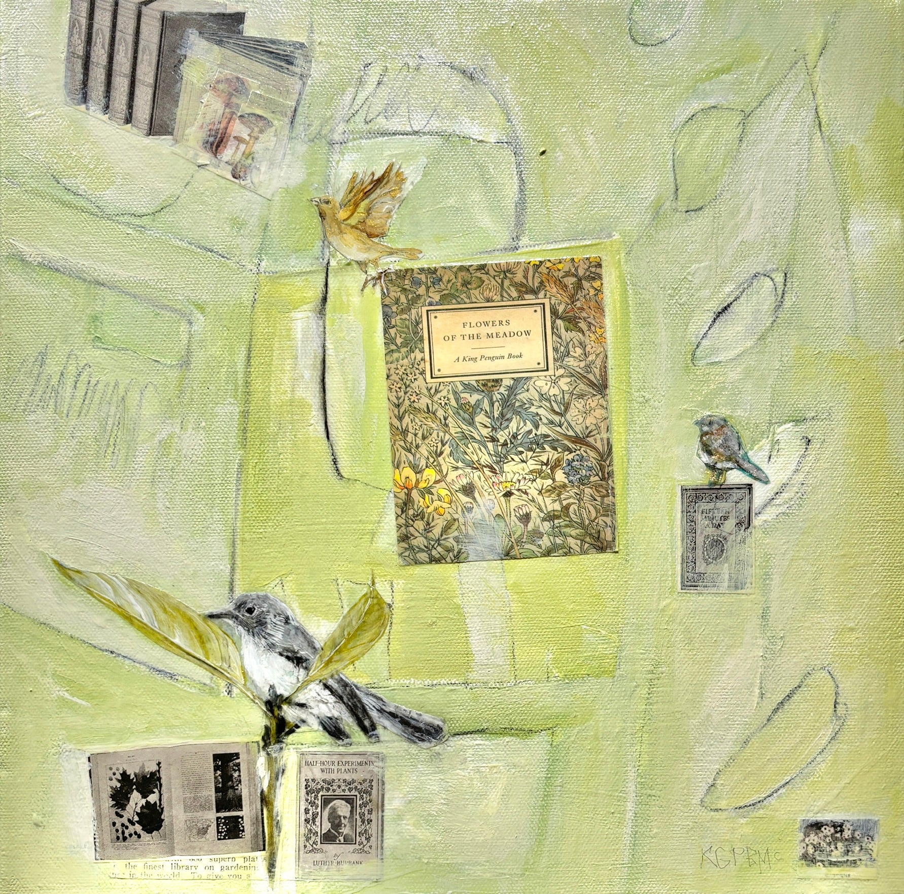 A lifelong artist, I make art because coming up with an idea is what gets me out of bed in the morning and into my studio, mercifully located in my home. So much of what I love in life is at home- my pets inside and wildlife out, nature pouring through the windows, comfortably cluttered rooms full of books and art, the forest surrounding me. My art originates with that early morning idea, a daily walk in the woods, the imagery around me. The deep connection to my surroundings is reflected in the art I make, even using pages of books in my art and the book itself as the canvas with the animals love as the subject. Animal and landscape renderings in mixed media, storytelling dioramas and large works on canvas all have a similar feel of natural wonder.