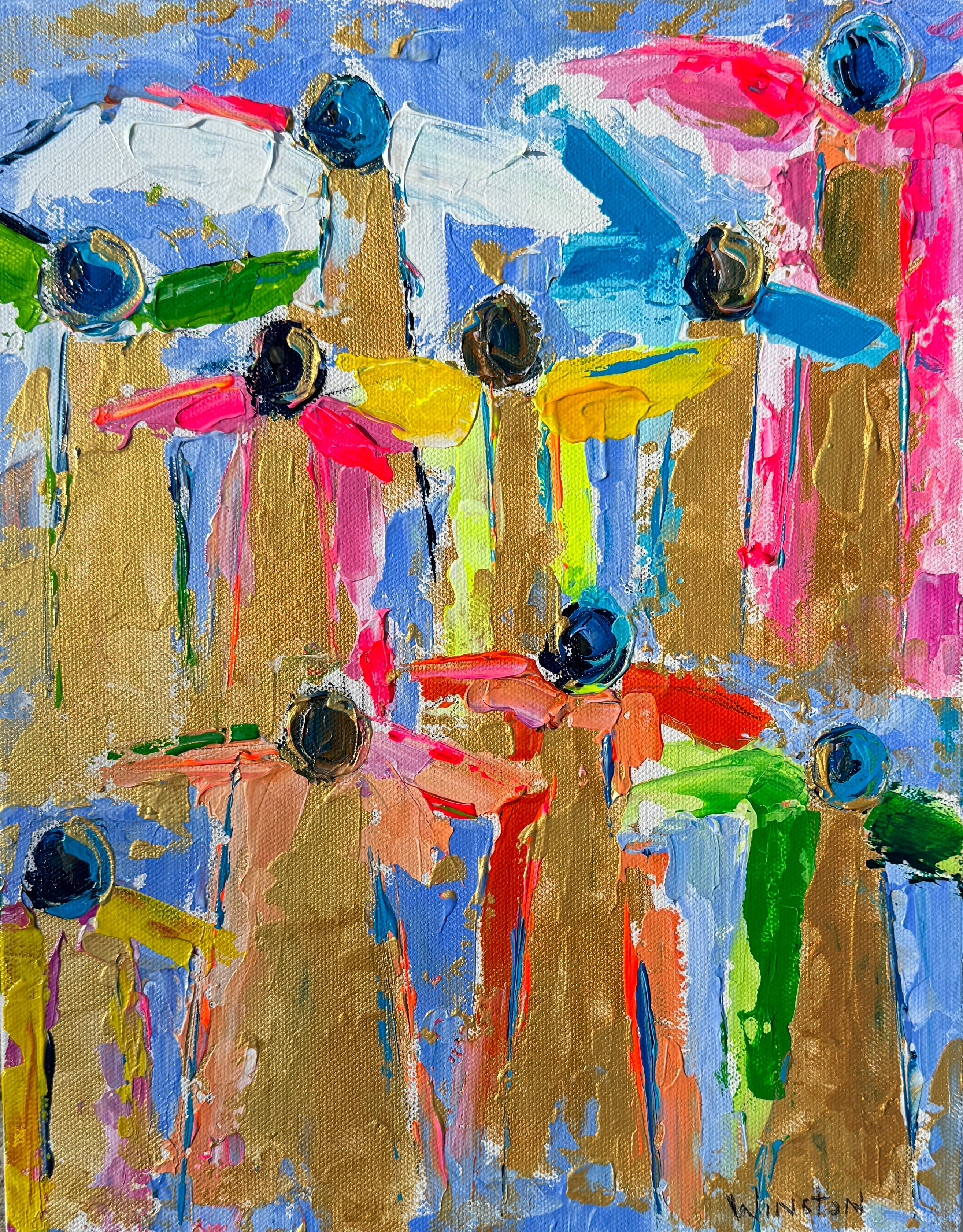 Winston Wiant is originally from Amelia Island, Florida, and full of southern charm. She brings her whimsical and witty delight to each and every painting. Having painted since childhood, she received a Bachelor of Arts degree in Studio Art at Brenau University and has been pursuing her love of art ever since. Her paintings are full of texture, using the palette knife and free brushstrokes to layer the paint, creating one energetic piece after another. She lives in Athens, GA, with her husband and two daughters and paints in her home studio. “Art to me is a form of self-expression. The way I feel that day reflects in my work. My love of bold color and texture is both distinctive and captivating.”