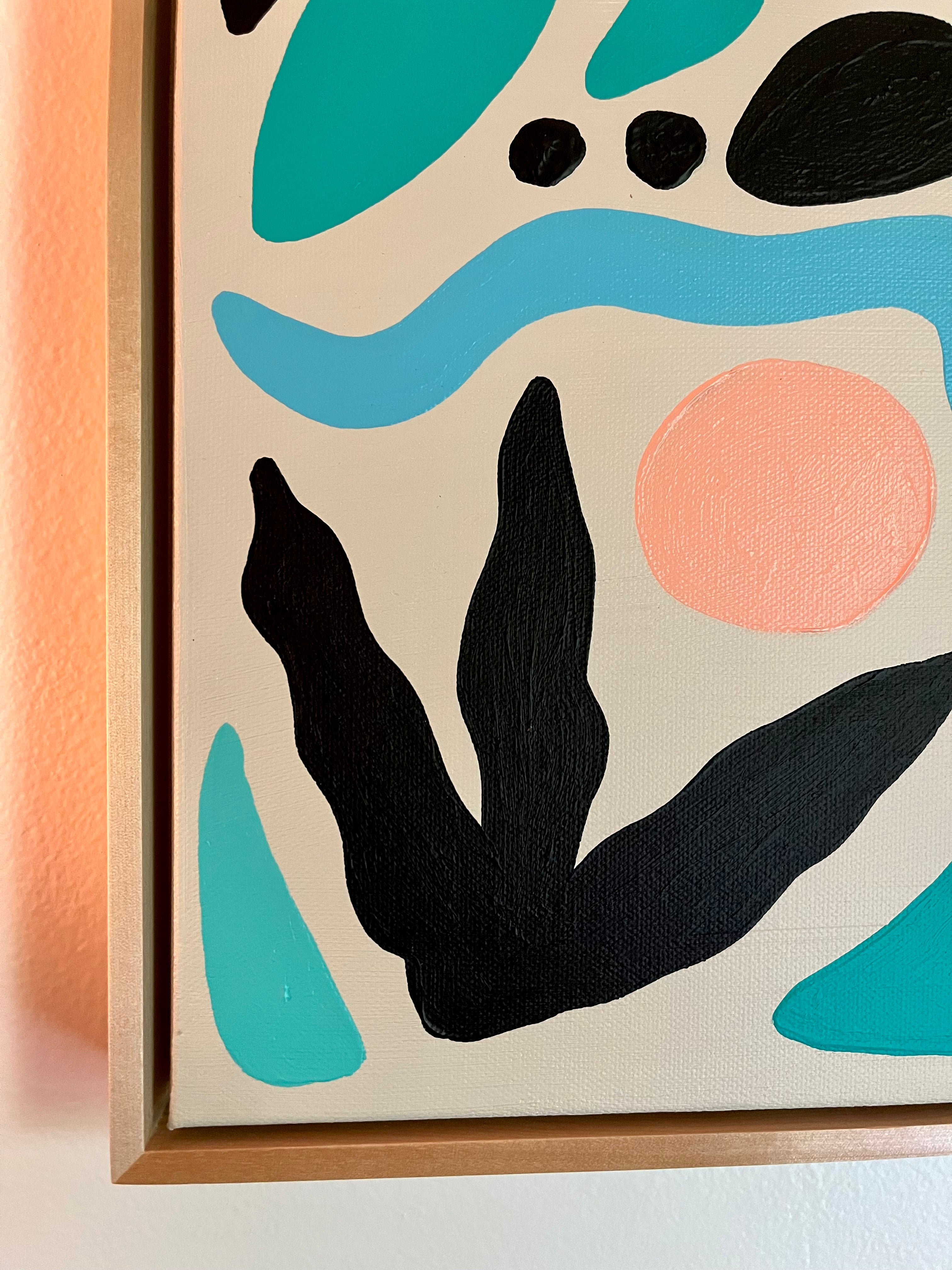 acrylic on gallery wrapped canvas, in light wood floater frame