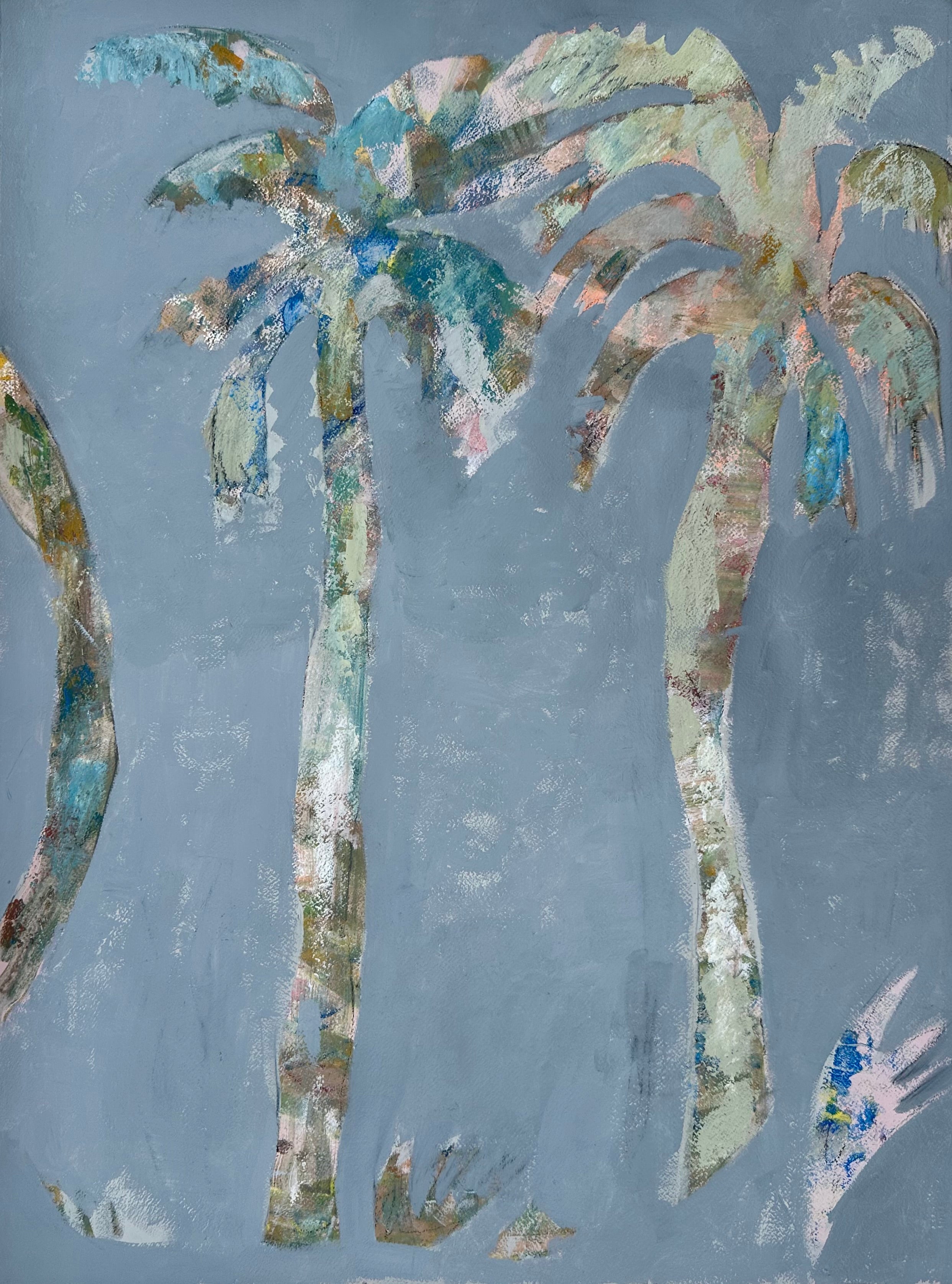 Margaret Meredith is an abstract painter working in acrylic and mixed media. Her work explores emotional atmosphere through layered surfaces, intuitive mark‑making, and a palette that balances moody, muted tones with moments of vivid color. Her recent work builds on botanical themes first explored in 2023, suggesting organic growth and memory rather than literal representation. Alongside this, Meredith has created minimalist, encaustic-medium, and collage‑based works that continue to inform her layered approach. Currently, she is focused on acrylic painting, embracing its fluidity and the freedom to work with water. Pencil marks, printed elements, stencils, and hand‑made tools play an ongoing role in her process, reflecting her love of printmaking and experimental mark‑making. Margaret Meredith lives and works in Columbus, Georgia, with her husband, a woodworker and mushroom farmer, and their two sons.