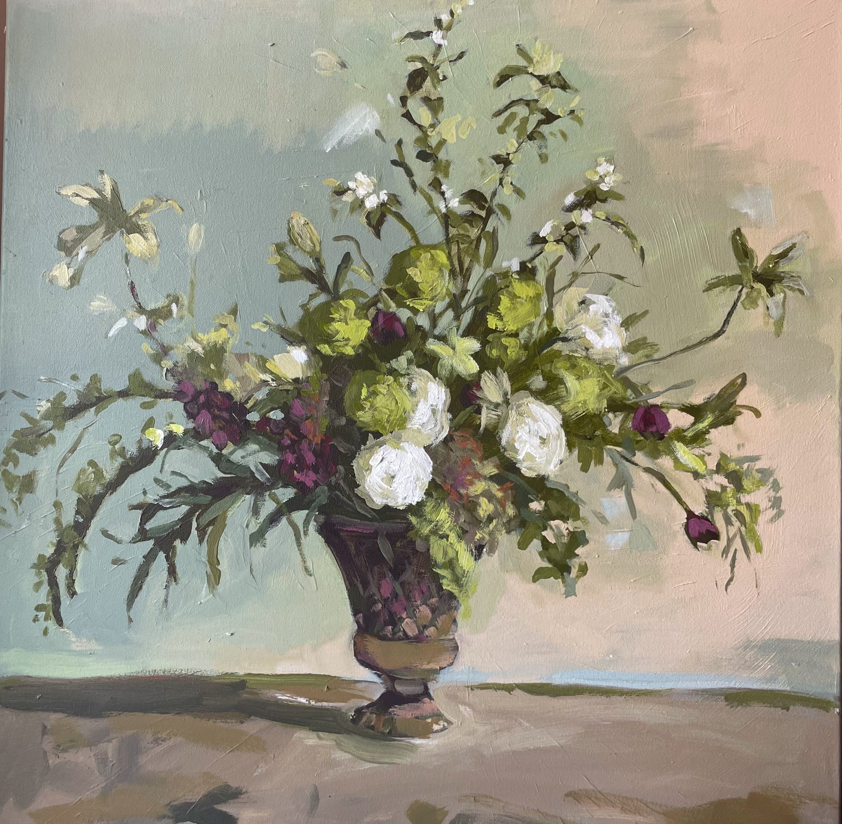 Christine hopes to create artwork that strikes the balance of fun and timeless, in an effortless manner. Composition and color harmony are a distinctive part of her work. Her palettes and subject matter are heavily influenced by her upbringing along the east coast of Florida. She hopes to bring everyday scenes to life through a new perspective and unexpected moments of color. Christine paints entirely from the three primaries (red, yellow + blue) and white. This has helped her gain a strong understanding of color theory.