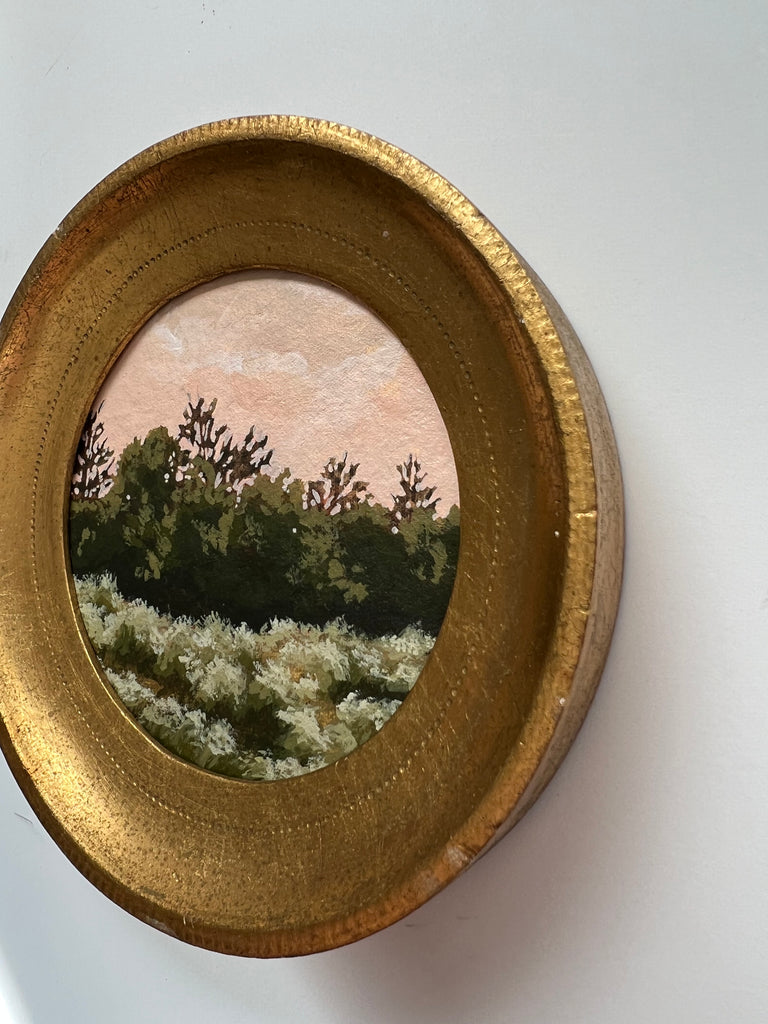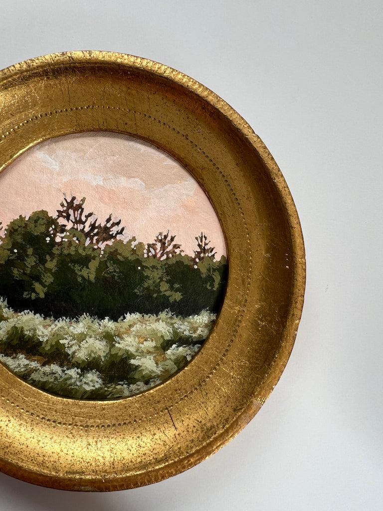 Jennifer was born in Jackson MS and moved to Nashville as a child. She enjoyed art as a child and painted with oils a bit as a teen, but ultimately went to MTSU to earn a degree in nutrition. Jennifer didn’t truly begin painting again until her children were in school full time, and started simply by painting pieces she wanted to hang in her own home. Discovering a love for vintage and antique frames (not to mention looking for these frames both in-person and online), she began pairing them with her favorite paintings. She paints primarily in acrylics on handmade paper. “I love the juxtaposition of a vintage/antique frame with the freshness of a modern landscape on textured handmade paper; the marriage of that tradition and history combined with the fresh clean colors in my pieces brings me joy.” She finds inspiration in clouds and trees and the hunt for the perfect vintage frame. Jennifer lives in Nashville with her husband and two boys.