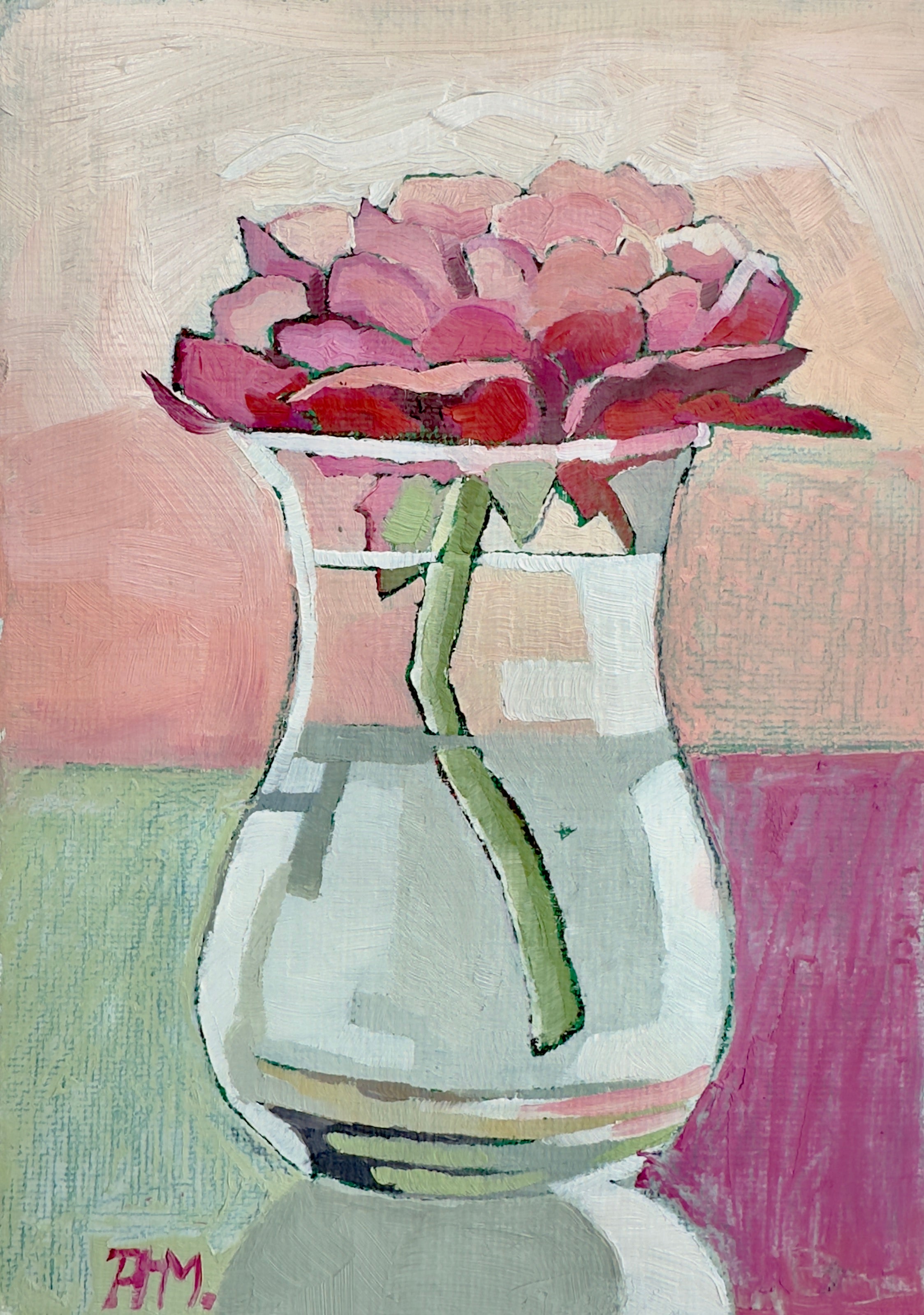 Pamela’s intention as a painter is to speak to the elegance of place and object; to use paint as a means to capture an image and then to reduce the noisy elements in landscape, botanical or interior subjects, by breaking down busy images into an economy of shape and hue. “I love a quiet place. I love to have the brain space to allow my mind and my eyes to soak in the images of my world. In the same manner, the image I want to paint must also speak to my need for simplicity and peace. Our world is a busy, loud and cluttered place. I can paint those elements out, leaving only lovely positive and negative shapes, made with colors that love to be together...” Painter and avid gardener who is fascinated with color, inspired by music, good reads and lessons to learn, Pamela works from her studio with windows that let in the woods of Northeast Georgia, where she lives with her husband Van, dog Tuck and friendly wildlife.