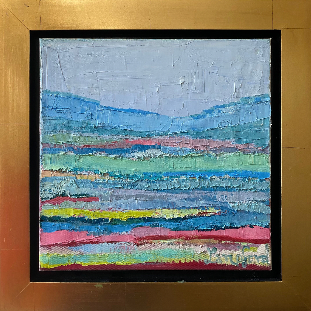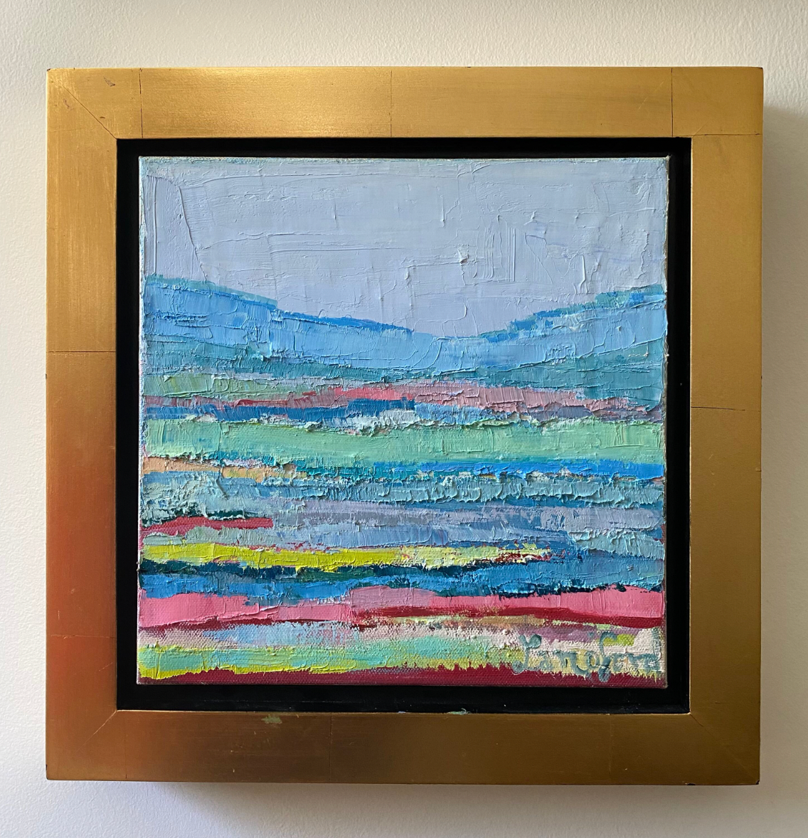 oil on canvas, framed in a gold floater frame