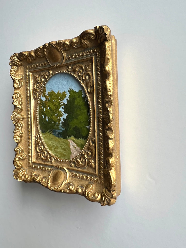 Jennifer was born in Jackson MS and moved to Nashville as a child. She enjoyed art as a child and painted with oils a bit as a teen, but ultimately went to MTSU to earn a degree in nutrition. Jennifer didn’t truly begin painting again until her children were in school full time, and started simply by painting pieces she wanted to hang in her own home. Discovering a love for vintage and antique frames (not to mention looking for these frames both in-person and online), she began pairing them with her favorite paintings. She paints primarily in acrylics on handmade paper. “I love the juxtaposition of a vintage/antique frame with the freshness of a modern landscape on textured handmade paper; the marriage of that tradition and history combined with the fresh clean colors in my pieces brings me joy.” She finds inspiration in clouds and trees and the hunt for the perfect vintage frame. Jennifer lives in Nashville with her husband and two boys.