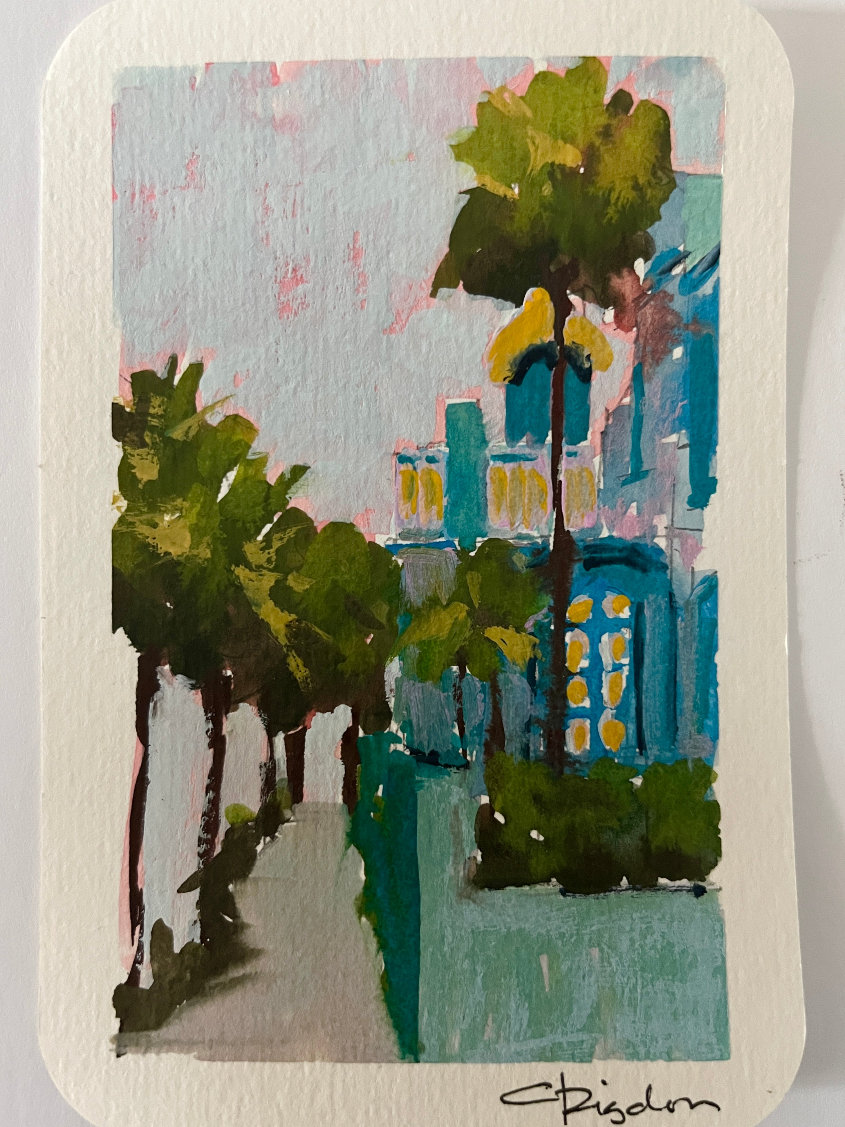 I find ultimate freedom in abstract expressionism and as such, I’m in search of the best way to convey who I am at the moment of creating. It is not to say it is a free-for-all; there is still structure within. I implement the same principles that realist painters employ with the absence of representation: composition, hierarchy, variety, juxtaposition are vital to a successful painting. But I do not limit myself to one medium or the other. I work in oil, acrylics and gouache and depending on what I’m exploring at the time I will choose one or more to express it. I also explore through a combination of paint and collage. It is through all of these various methods and mediums that I am able to share my fullest expression of self and my authenticity. My paintings ultimately are self portraits that are created from both past experiences and also future hopes and dreams. It is my goal to invoke a feeling for the viewer. When it does I have succeede