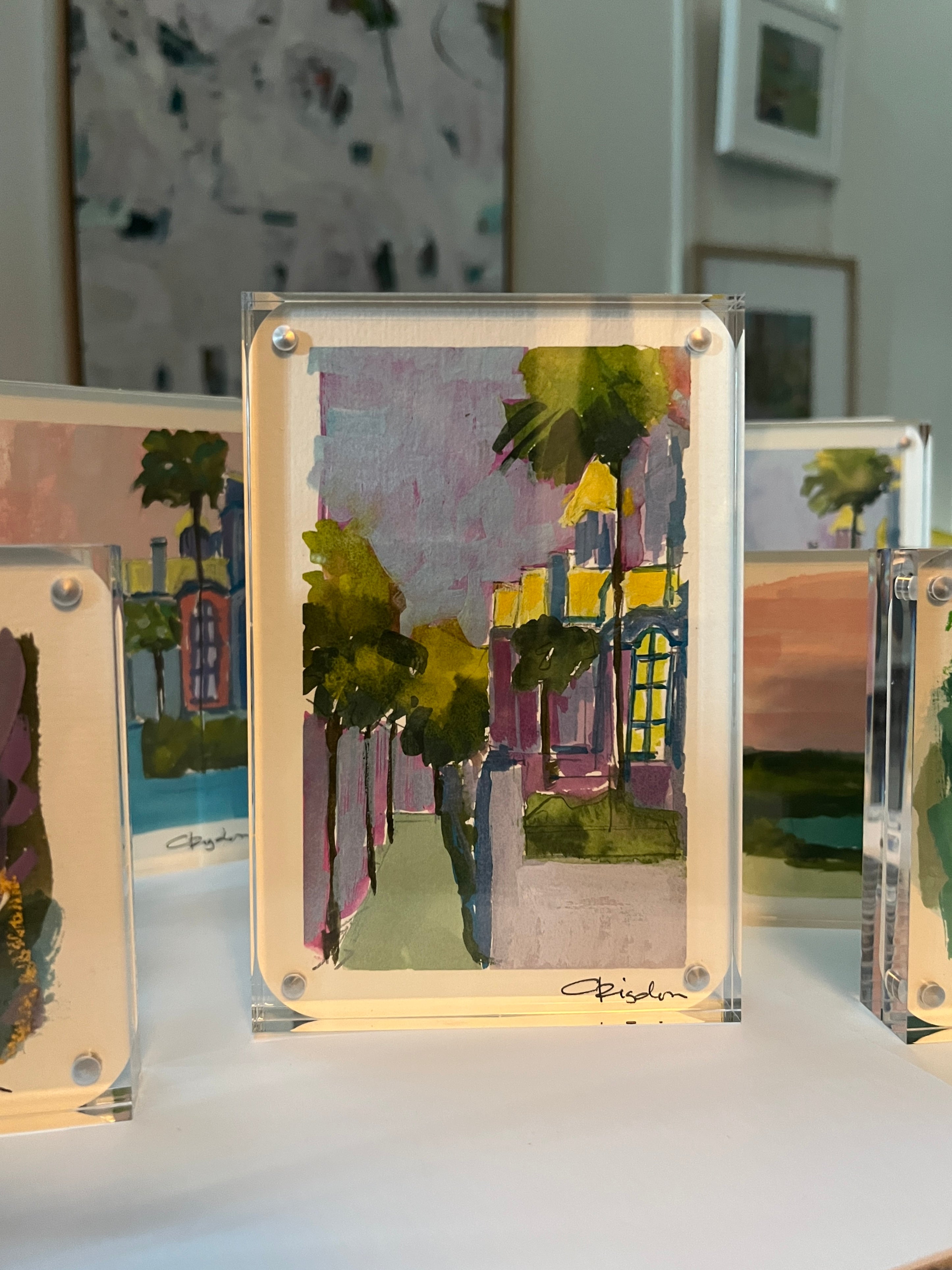 I find ultimate freedom in abstract expressionism and as such, I’m in search of the best way to convey who I am at the moment of creating. It is not to say it is a free-for-all; there is still structure within. I implement the same principles that realist painters employ with the absence of representation: composition, hierarchy, variety, juxtaposition are vital to a successful painting. But I do not limit myself to one medium or the other. I work in oil, acrylics and gouache and depending on what I’m exploring at the time I will choose one or more to express it. I also explore through a combination of paint and collage. It is through all of these various methods and mediums that I am able to share my fullest expression of self and my authenticity. My paintings ultimately are self portraits that are created from both past experiences and also future hopes and dreams. It is my goal to invoke a feeling for the viewer. When it does I have succeede