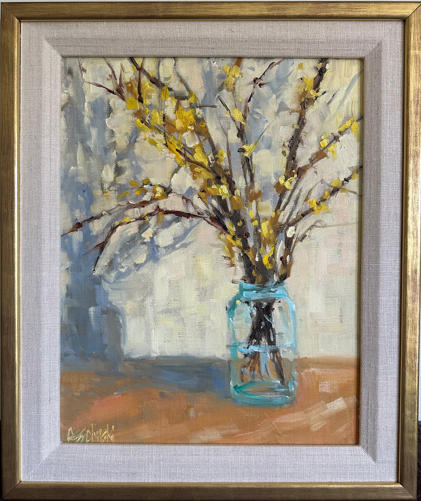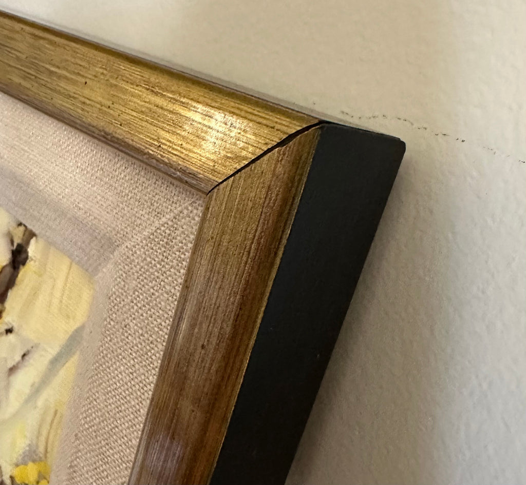 oil on linen board, framed in gold frame with linen mat