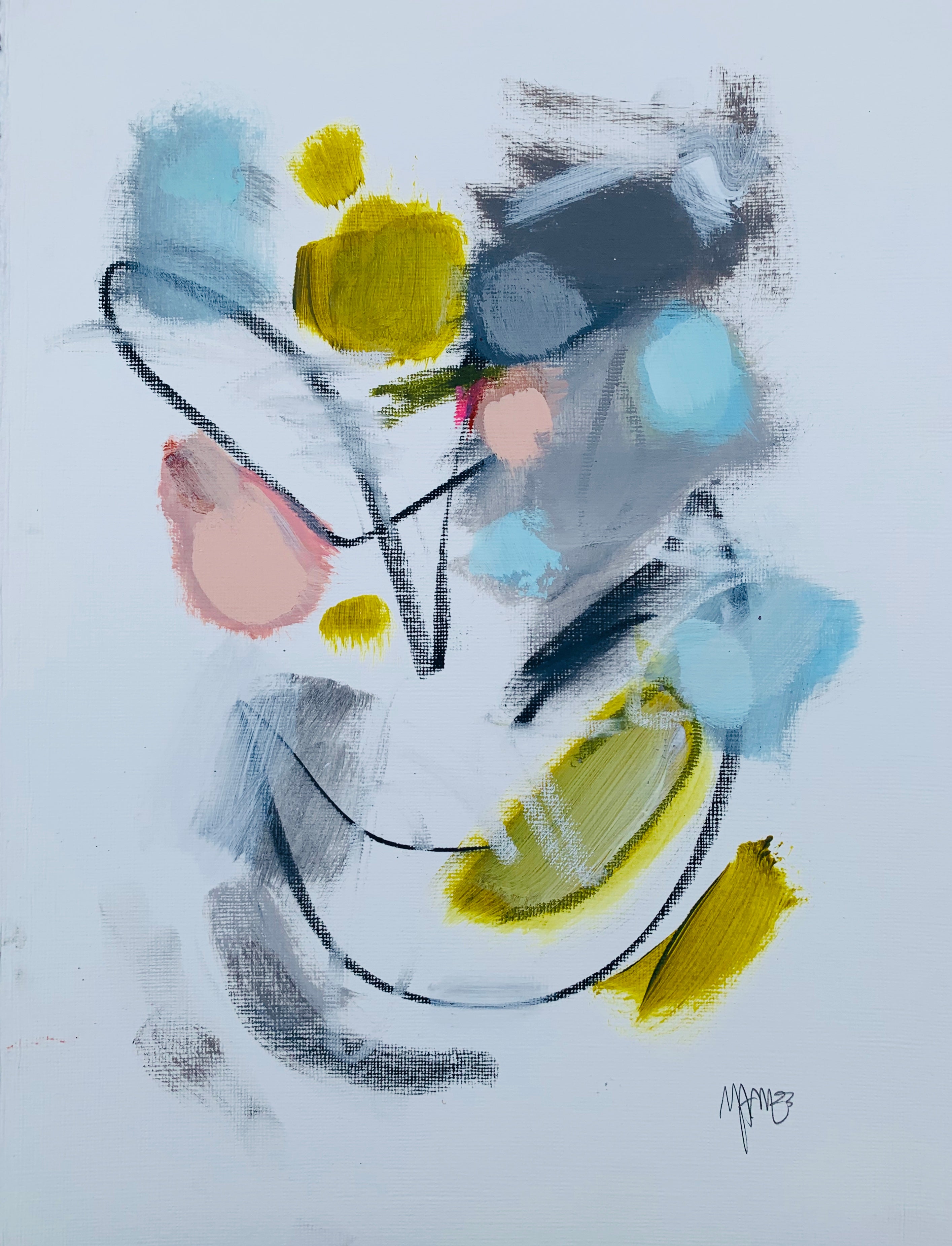 Michele James is an abstract painter known for her large works on canvas. She is inspired by color and movement and uses strong brushstroke and varied marks on neutral canvases with pops of bold colors. She paints with acrylics , and uses chalk, oil pastels and pencil to vary the texture and medium of her works. She is influenced by the colors in nature, the lightness and space of the sky, and the texture and depth of landscapes. “I love to make people happy and for a client to add my painting to their home is wonderful compliment” Michele received a BFA in fine art and art history at Hunter College in New York, NY with a concentration in studio painting. Michele paints out of her home studio in Atlanta where she lives with her husband and three kids.