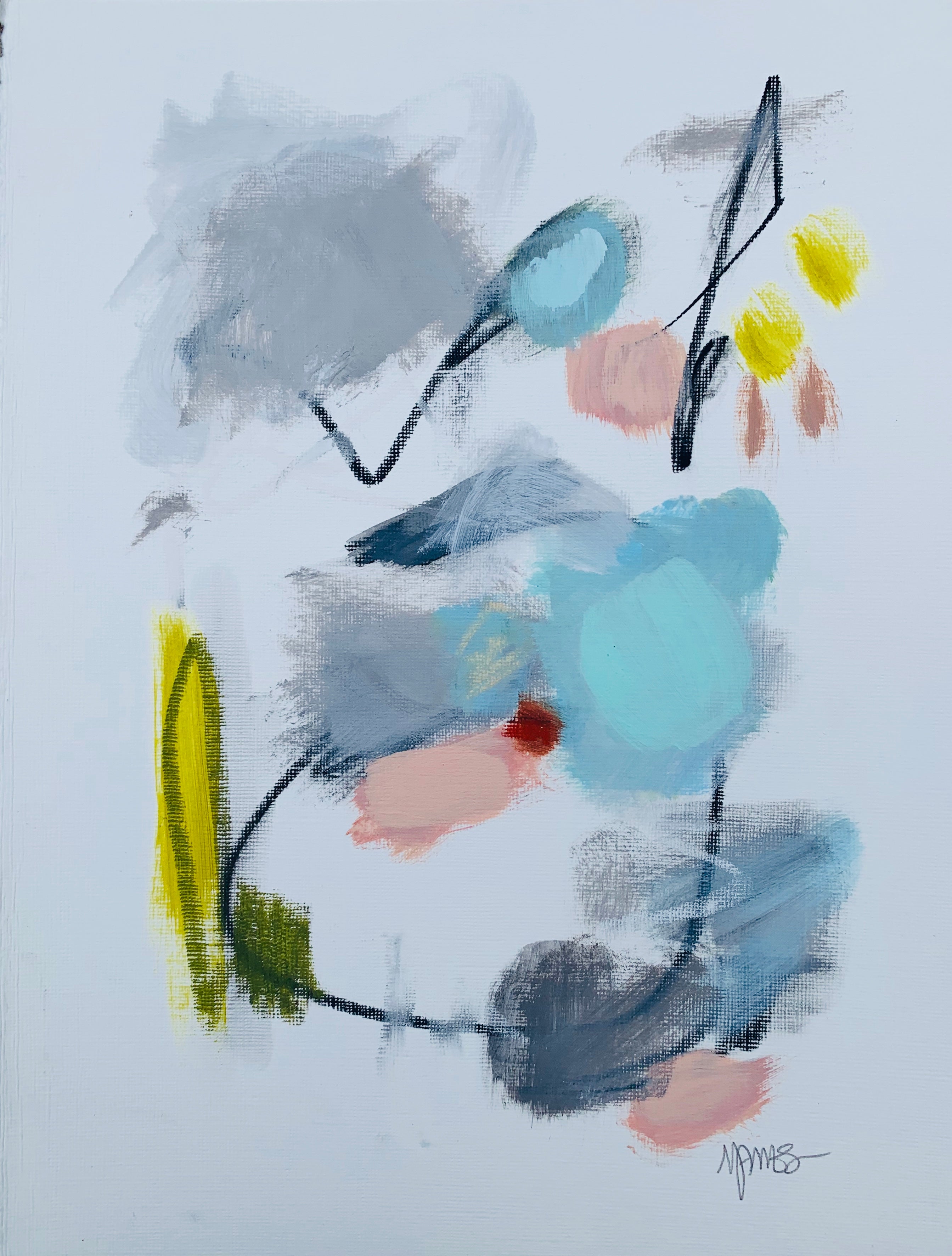 Michele James is an abstract painter known for her large works on canvas. She is inspired by color and movement and uses strong brushstroke and varied marks on neutral canvases with pops of bold colors. She paints with acrylics , and uses chalk, oil pastels and pencil to vary the texture and medium of her works. She is influenced by the colors in nature, the lightness and space of the sky, and the texture and depth of landscapes. “I love to make people happy and for a client to add my painting to their home is wonderful compliment” Michele received a BFA in fine art and art history at Hunter College in New York, NY with a concentration in studio painting. Michele paints out of her home studio in Atlanta where she lives with her husband and three kids.