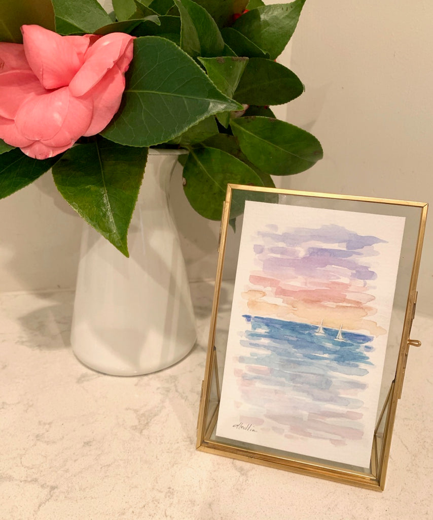 watercolor on paper, in gold frame