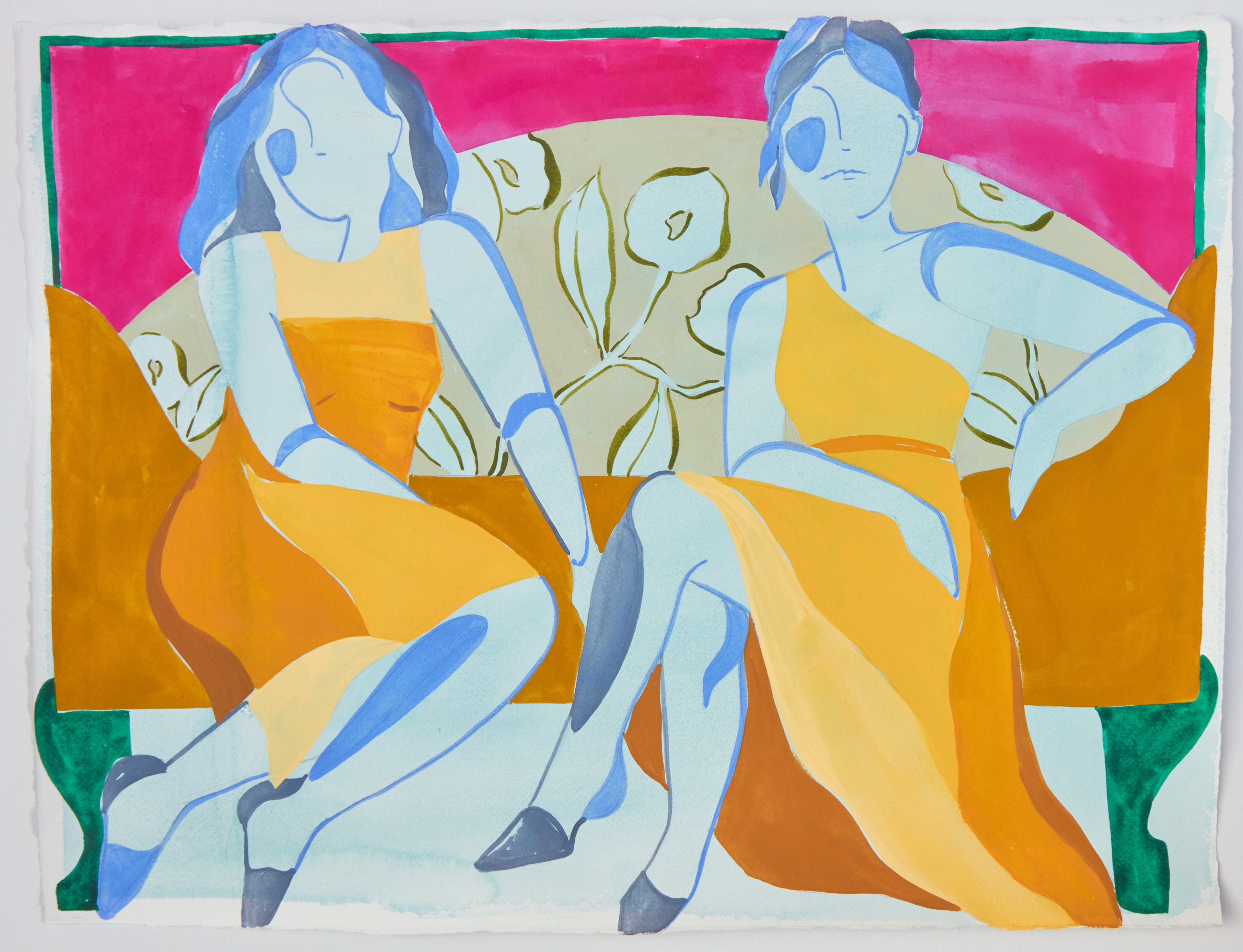 My name is Lizzy Love and I'm an artist in Nashville, TN. I create figurative works on canvas with acrylic paint and papers with watercolor and gouache. This body of work has been a rebirth for me creatively. While I've been painting full time for the last 5 years, I feel like I've really come into myself creatively with my figurative paintings. Born out of a time of uncertainty and lots of questioning, I was pushed to dig deep and get back to basics. I decided to switch gears from painting the landscapes, for which I had been primarily making for years. As an effort to get my creative spark back, I started sketching figures from magazines, a subject I hadn’t explored in a long time. Over many months they slowly evolved into what they have become; starting from detailed and realistic, to more abstract and modernist. I am a big believer that the environment of your home shapes your attitude, and for that reason I love interior design. That love is what led me to start incorporating furniture / interior surroundings / and patterns into the pieces. I pull apart and put back together the lines and shapes of many of my favorite interiors, and place them amongst the figures in a dynamic way. These ladies embody many things - community, respect, femininity, reverence. They are a way to draw attention to what being a woman entails. Many times it means being fierce and strong. Many times it means leaning on and drawing your strength from friends that are like family. While creating each piece, I draw upon the love and reverence I have for all the women in my life; the women who have shaped me, lifted me up when I needed it, laughed with me, and inspired me.