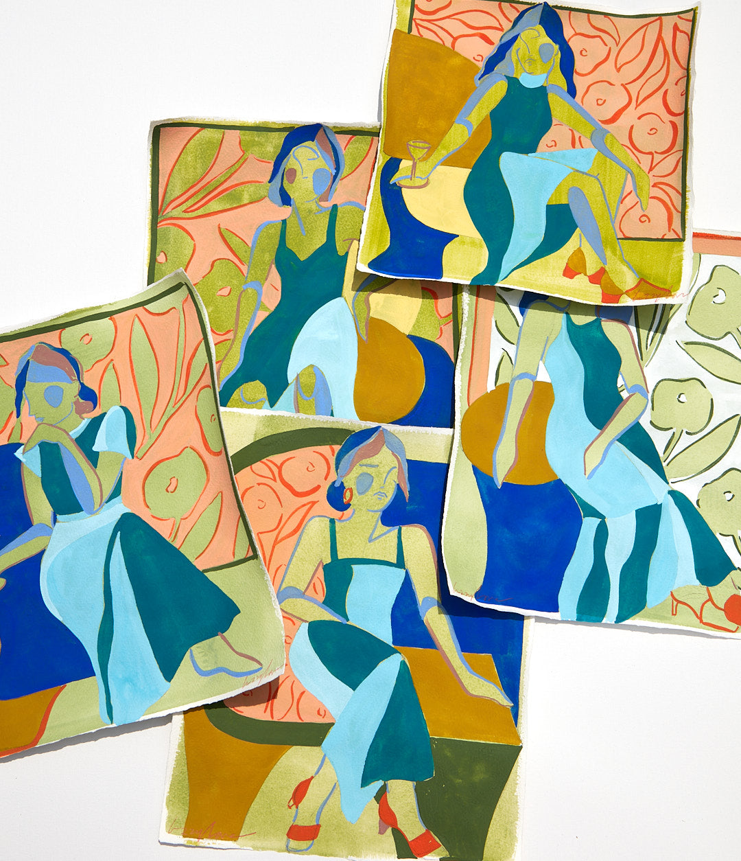 My name is Lizzy Love and I'm an artist in Nashville, TN. I create figurative works on canvas with acrylic paint and papers with watercolor and gouache. This body of work has been a rebirth for me creatively. While I've been painting full time for the last 5 years, I feel like I've really come into myself creatively with my figurative paintings. Born out of a time of uncertainty and lots of questioning, I was pushed to dig deep and get back to basics. I decided to switch gears from painting the landscapes, for which I had been primarily making for years. As an effort to get my creative spark back, I started sketching figures from magazines, a subject I hadn’t explored in a long time. Over many months they slowly evolved into what they have become; starting from detailed and realistic, to more abstract and modernist. I am a big believer that the environment of your home shapes your attitude, and for that reason I love interior design. That love is what led me to start incorporating furniture / interior surroundings / and patterns into the pieces. I pull apart and put back together the lines and shapes of many of my favorite interiors, and place them amongst the figures in a dynamic way. These ladies embody many things - community, respect, femininity, reverence. They are a way to draw attention to what being a woman entails. Many times it means being fierce and strong. Many times it means leaning on and drawing your strength from friends that are like family. While creating each piece, I draw upon the love and reverence I have for all the women in my life; the women who have shaped me, lifted me up when I needed it, laughed with me, and inspired me.