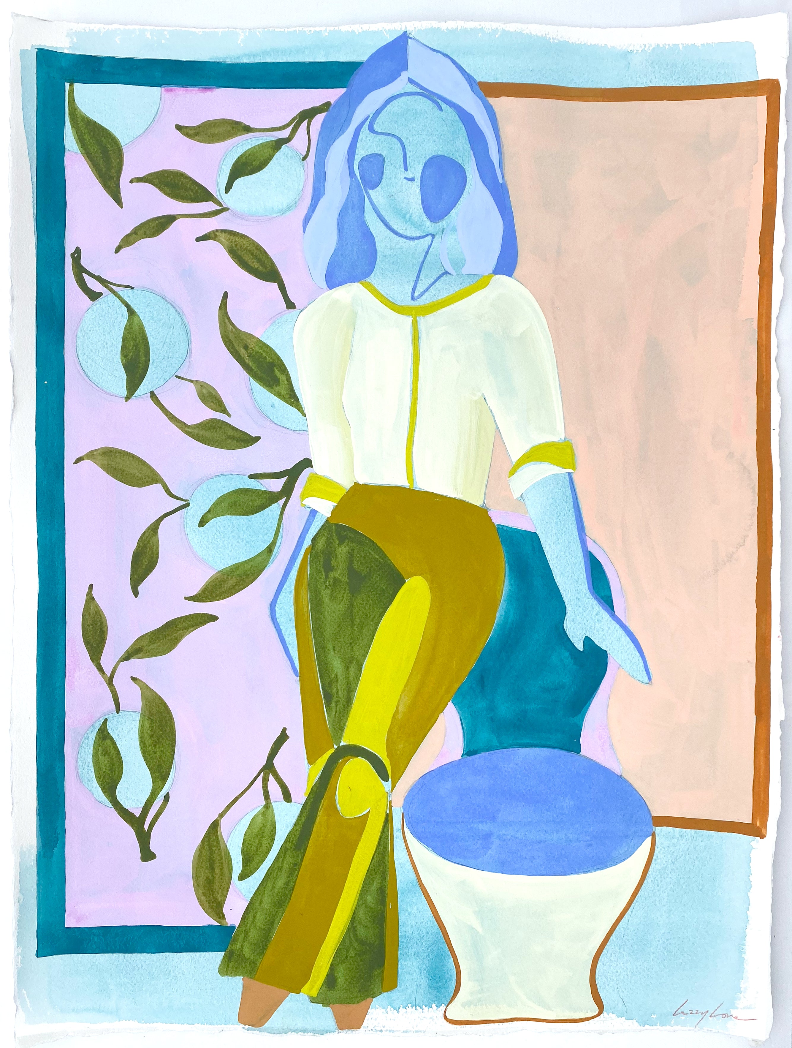 My name is Lizzy Love and I'm an artist in Nashville, TN. I create figurative works on canvas with acrylic paint and papers with watercolor and gouache. This body of work has been a rebirth for me creatively. While I've been painting full time for the last 5 years, I feel like I've really come into myself creatively with my figurative paintings. Born out of a time of uncertainty and lots of questioning, I was pushed to dig deep and get back to basics. I decided to switch gears from painting the landscapes, for which I had been primarily making for years. As an effort to get my creative spark back, I started sketching figures from magazines, a subject I hadn’t explored in a long time. Over many months they slowly evolved into what they have become; starting from detailed and realistic, to more abstract and modernist. I am a big believer that the environment of your home shapes your attitude, and for that reason I love interior design. That love is what led me to start incorporating furniture / interior surroundings / and patterns into the pieces. I pull apart and put back together the lines and shapes of many of my favorite interiors, and place them amongst the figures in a dynamic way. These ladies embody many things - community, respect, femininity, reverence. They are a way to draw attention to what being a woman entails. Many times it means being fierce and strong. Many times it means leaning on and drawing your strength from friends that are like family. While creating each piece, I draw upon the love and reverence I have for all the women in my life; the women who have shaped me, lifted me up when I needed it, laughed with me, and inspired me.