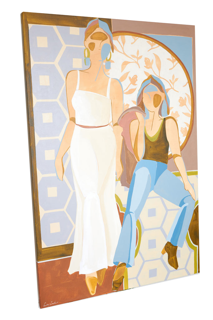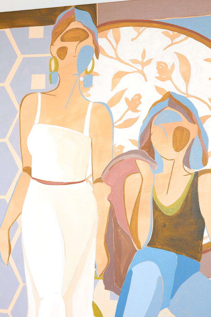 My name is Lizzy Love and I'm an artist in Nashville, TN. I create figurative works on canvas with acrylic paint and papers with watercolor and gouache. This body of work has been a rebirth for me creatively. While I've been painting full time for the last 5 years, I feel like I've really come into myself creatively with my figurative paintings. Born out of a time of uncertainty and lots of questioning, I was pushed to dig deep and get back to basics. I decided to switch gears from painting the landscapes, for which I had been primarily making for years. As an effort to get my creative spark back, I started sketching figures from magazines, a subject I hadn’t explored in a long time. Over many months they slowly evolved into what they have become; starting from detailed and realistic, to more abstract and modernist. I am a big believer that the environment of your home shapes your attitude, and for that reason I love interior design. That love is what led me to start incorporating furniture / interior surroundings / and patterns into the pieces. I pull apart and put back together the lines and shapes of many of my favorite interiors, and place them amongst the figures in a dynamic way. These ladies embody many things - community, respect, femininity, reverence. They are a way to draw attention to what being a woman entails. Many times it means being fierce and strong. Many times it means leaning on and drawing your strength from friends that are like family. While creating each piece, I draw upon the love and reverence I have for all the women in my life; the women who have shaped me, lifted me up when I needed it, laughed with me, and inspired me.