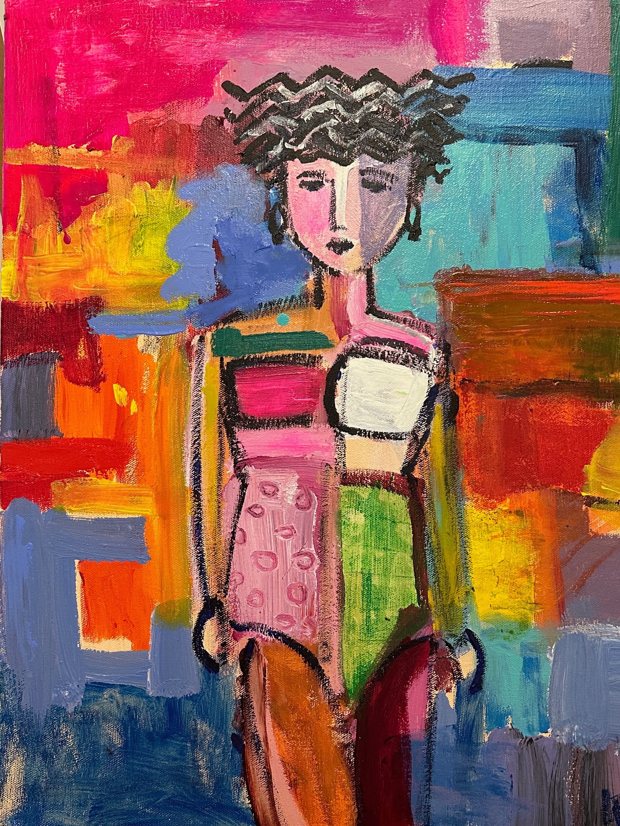 Page Morris picked up a paintbrush in third grade and never looked back. Largely self-taught, her client list reaches as far as Canada and includes syndicated columnist Kathleen Parker. Galleries representing her work include: Verve and Over the Mantle in Columbia, SC; Grand Bohemian Gallery in Charleston, SC and One Kings Lane. "My subject matter is women who are feminine, colorful, playful, strong, and beautiful. I use paper, pencil, markers, oil sticks, and paint to achieve a multi-dimensional look. I love texture because the viewers see even more when they stop to take a second look. I adhere to a rigid schedule of painting each day. Creativity only happens if I'm hard at work in my studio. I love what I do and hope my viewers can see that. It's a joyous experience to pick up a paintbrush. It's what I do and what I am."