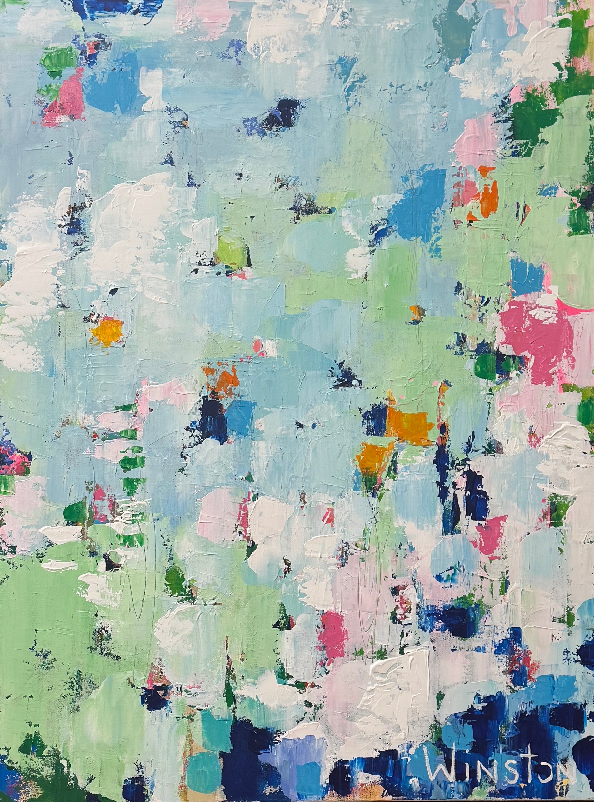 Winston Wiant is originally from Amelia Island, Florida, and full of southern charm. She brings her whimsical and witty delight to each and every painting. Having painted since childhood, she received a Bachelor of Arts degree in Studio Art at Brenau University and has been pursuing her love of art ever since. Her paintings are full of texture, using the palette knife and free brushstrokes to layer the paint, creating one energetic piece after another. She lives in Athens, GA, with her husband and two daughters and paints in her home studio. “Art to me is a form of self-expression. The way I feel that day reflects in my work. My love of bold color and texture is both distinctive and captivating.”