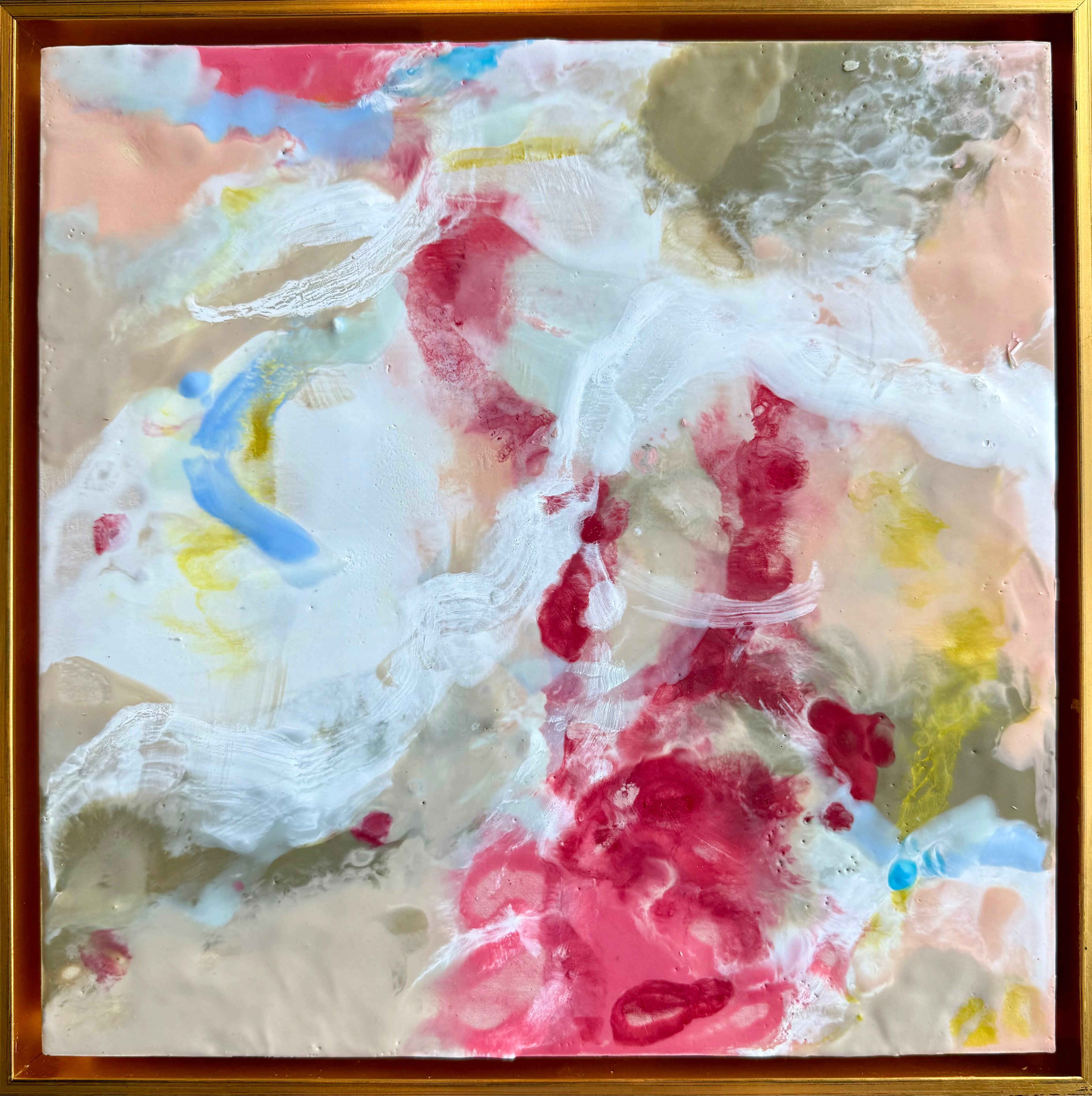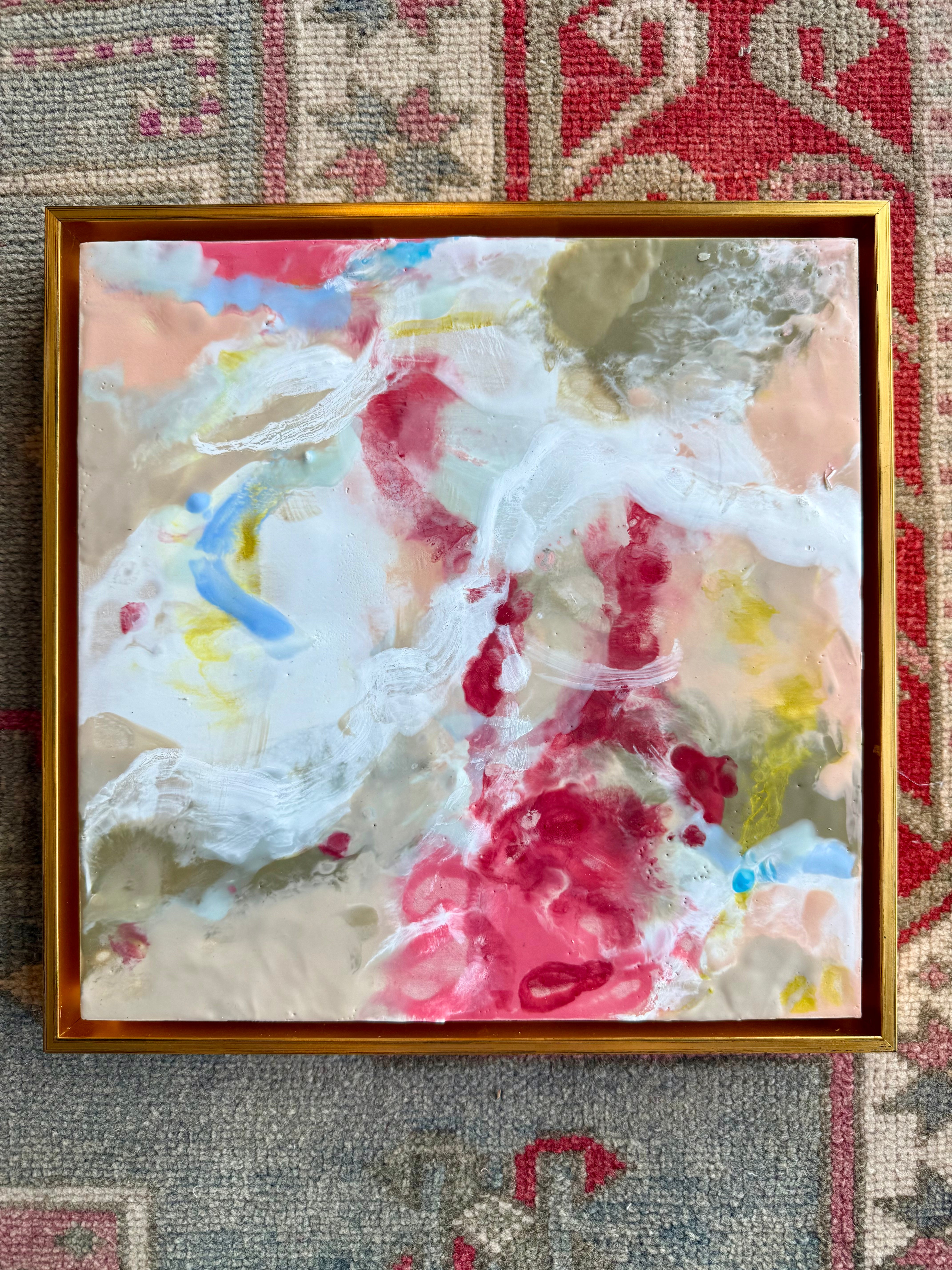 encaustic on wood in gold floating frame