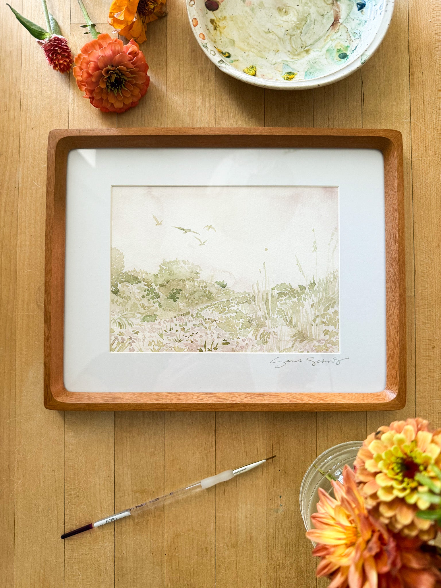 Much of Sarah Schools’ work reflects the warm, seasonal glow of the Carolinas. As both an oil painter and watercolor artist, she finds joy in discovering color in unexpected places—whether it's the dreaminess of golden hour, the soft depth of a cornflower blue shadow, or the delicate light that appears when the sun hits just right. Her creative process often involves experimenting with color to convey mood and atmosphere, layering bright hues and subtle tones with careful detail. Recently, she has been especially drawn to the flora and fauna of the Southeast, capturing native plants, trees, and the wildlife that inhabit them.