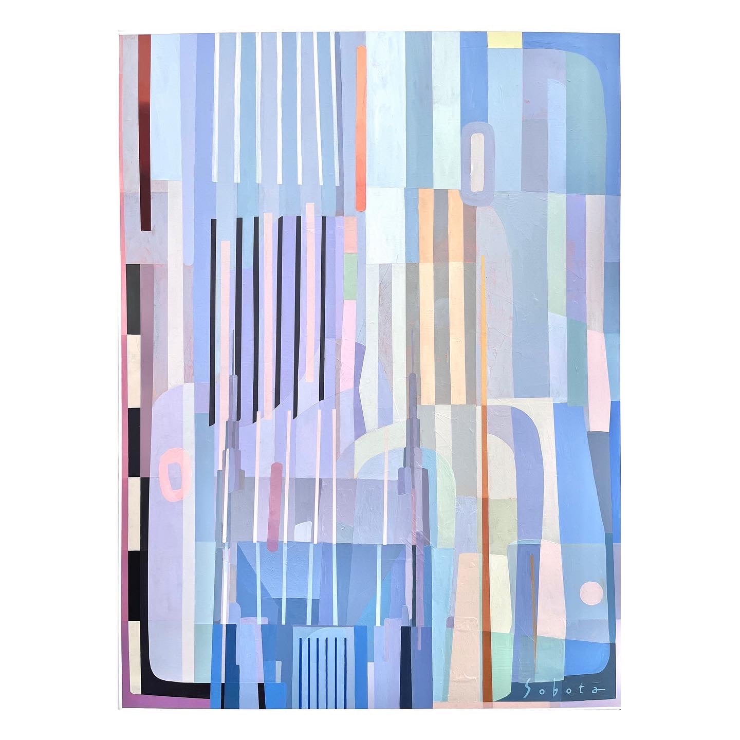 Tony Sobota is a Nashville based painter obsessed with the effects of color, movement, and structure. Since 2016 he has closely followed Nashville’s frantically changing real estate landscape, forming his interests into an ongoing series of observational studies and architectural abstractions. Mostly self-taught, his Art of Construction series helped him win top honors as a part of the Nashville Arts and Business Council’s Periscope class of 2017. He has been awarded several grants for public projects in the Nashville area such as his 2019 “Little Kurdistan Community Mural”, featured on NPR. Exhibiting at multiple gallery shows in the region his work “5th+Broad” was also chosen for Artfields 2021, one of the largest art shows in the South. Most recently his paintings appeared on the larger than life Nashville Sign, and can be found in the collections of Metro Nashville, Graduate Hotels, and Chartwell Hospitality, among others.