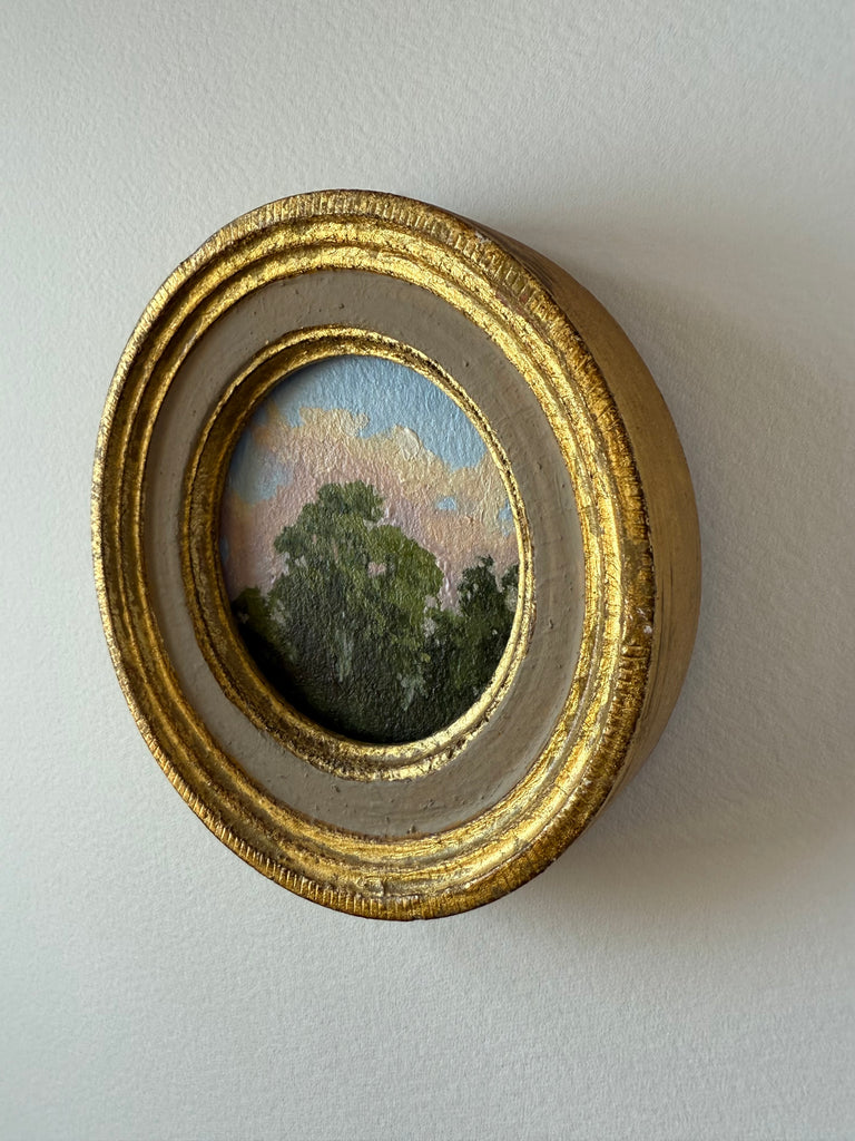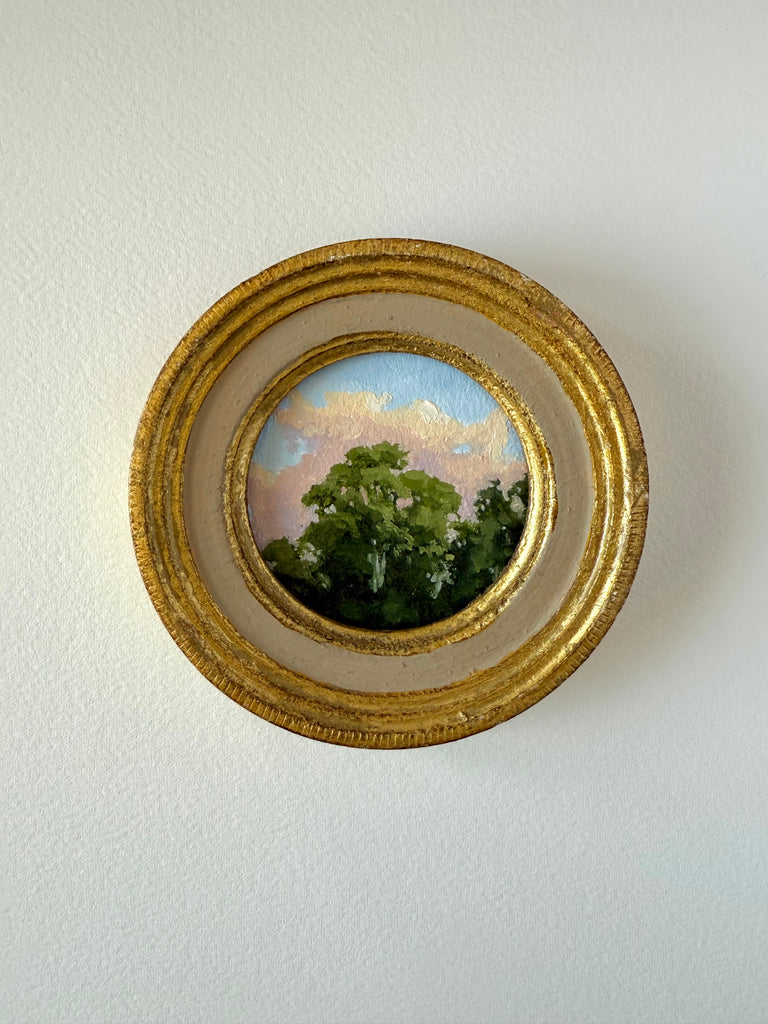 Jennifer was born in Jackson MS and moved to Nashville as a child. She enjoyed art as a child and painted with oils a bit as a teen, but ultimately went to MTSU to earn a degree in nutrition. Jennifer didn’t truly begin painting again until her children were in school full time, and started simply by painting pieces she wanted to hang in her own home. Discovering a love for vintage and antique frames (not to mention looking for these frames both in-person and online), she began pairing them with her favorite paintings. She paints primarily in acrylics on handmade paper. “I love the juxtaposition of a vintage/antique frame with the freshness of a modern landscape on textured handmade paper; the marriage of that tradition and history combined with the fresh clean colors in my pieces brings me joy.” She finds inspiration in clouds and trees and the hunt for the perfect vintage frame. Jennifer lives in Nashville with her husband and two boys.