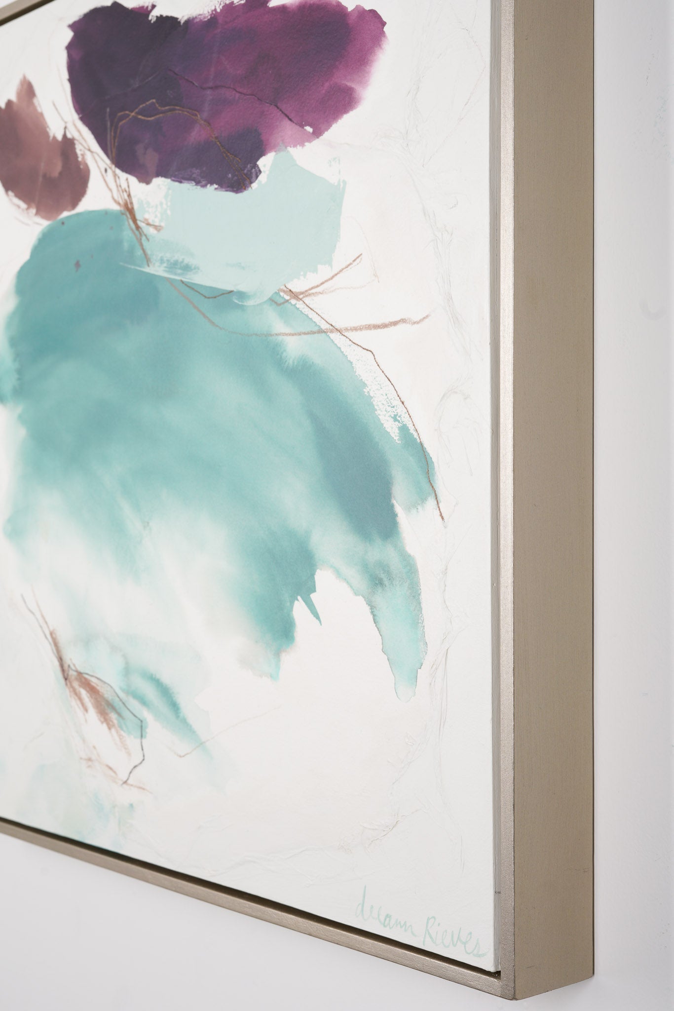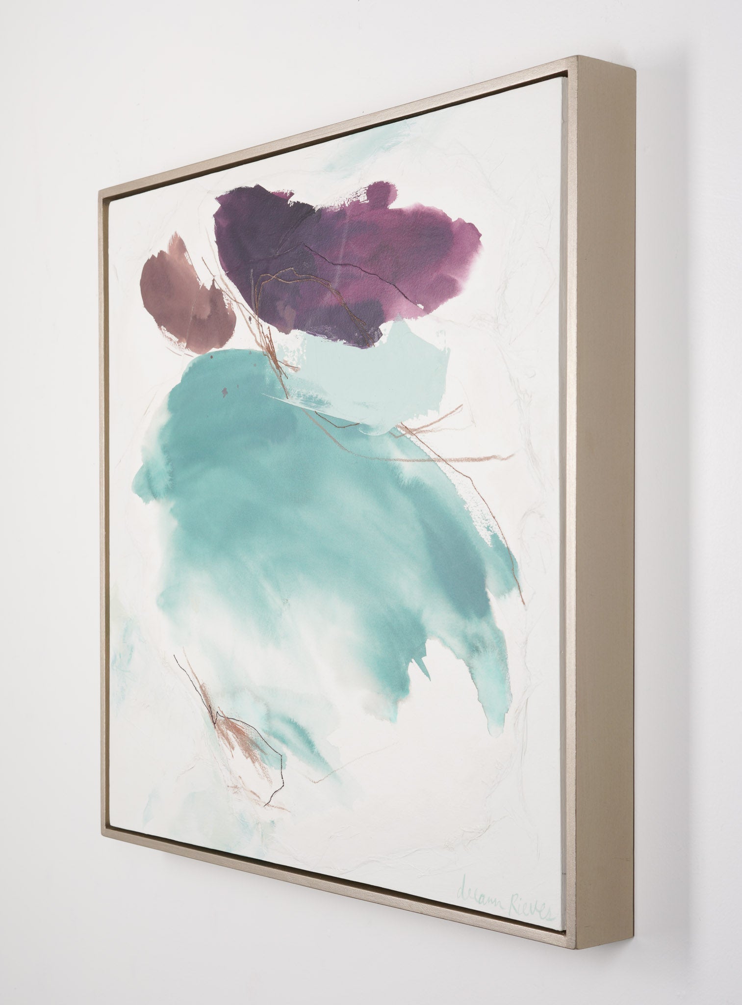 mixed media on wood panel in metallic champagne frame