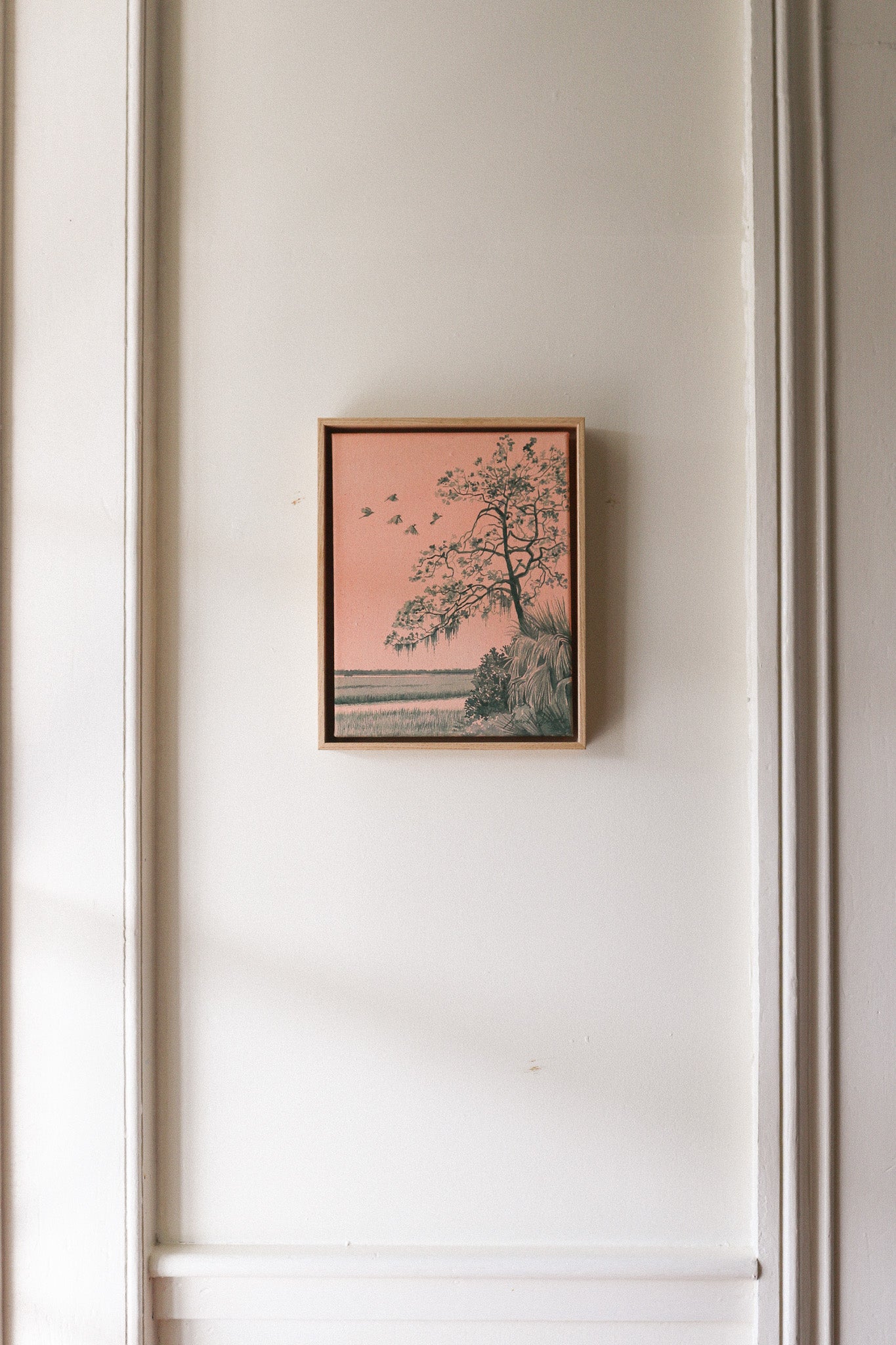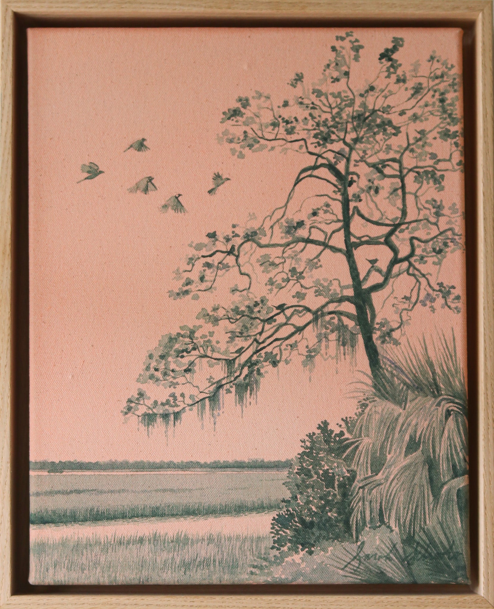 Much of Sarah Schools’ work reflects the warm, seasonal glow of the Carolinas. As both an oil painter and watercolor artist, she finds joy in discovering color in unexpected places—whether it's the dreaminess of golden hour, the soft depth of a cornflower blue shadow, or the delicate light that appears when the sun hits just right. Her creative process often involves experimenting with color to convey mood and atmosphere, layering bright hues and subtle tones with careful detail. Recently, she has been especially drawn to the flora and fauna of the Southeast, capturing native plants, trees, and the wildlife that inhabit them.