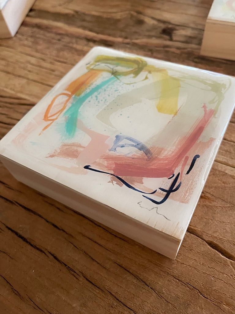 It all began with a passion for pencil drawing and pen and ink. From there, Emily Brown has grown into a celebrated artist using her love for texture and layering to create beautiful pieces of art. She combines bold strokes of color with the starkness of innocent lines and untouched spaces to tell a unique story through her work. After earning a BFA at Mississippi State University, Emily started her career as a graphic designer in Memphis, Tennessee, while also launching her own line of handmade paper products. In 2010, Emily moved to Charleston and turned her full attention to painting. Her art is ever changing and evolving. She often creates several pieces at a time, shifting them from her easel as inspiration strikes until their transformation is complete and they are ready for you to enjoy. http://emilybrownart.com/home.html