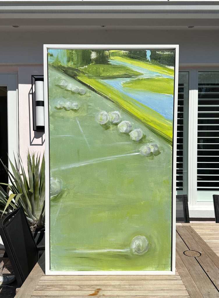 acrylic on canvas, in white floater frame