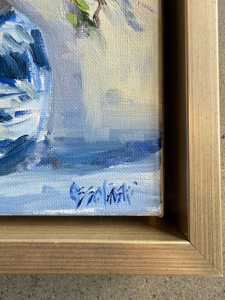 oil on linen panel, framed in matte gold frame