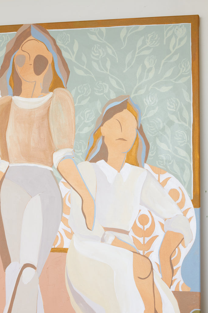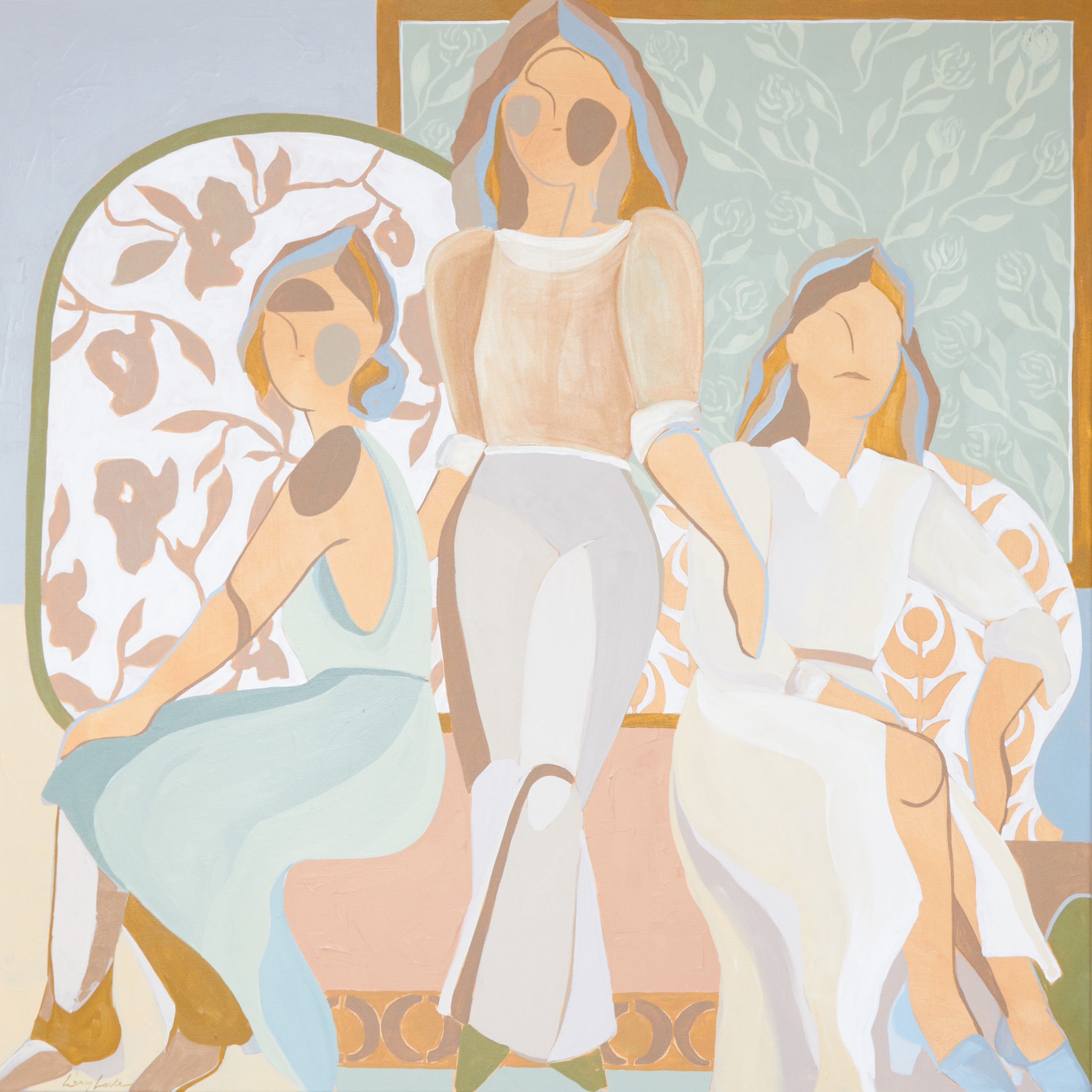 My name is Lizzy Love and I'm an artist in Nashville, TN. I create figurative works on canvas with acrylic paint and papers with watercolor and gouache. This body of work has been a rebirth for me creatively. While I've been painting full time for the last 5 years, I feel like I've really come into myself creatively with my figurative paintings. Born out of a time of uncertainty and lots of questioning, I was pushed to dig deep and get back to basics. I decided to switch gears from painting the landscapes, for which I had been primarily making for years. As an effort to get my creative spark back, I started sketching figures from magazines, a subject I hadn’t explored in a long time. Over many months they slowly evolved into what they have become; starting from detailed and realistic, to more abstract and modernist. I am a big believer that the environment of your home shapes your attitude, and for that reason I love interior design. That love is what led me to start incorporating furniture / interior surroundings / and patterns into the pieces. I pull apart and put back together the lines and shapes of many of my favorite interiors, and place them amongst the figures in a dynamic way. These ladies embody many things - community, respect, femininity, reverence. They are a way to draw attention to what being a woman entails. Many times it means being fierce and strong. Many times it means leaning on and drawing your strength from friends that are like family. While creating each piece, I draw upon the love and reverence I have for all the women in my life; the women who have shaped me, lifted me up when I needed it, laughed with me, and inspired me.