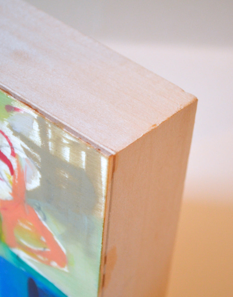 acrylic, charcoal, and resin on cradled birch board