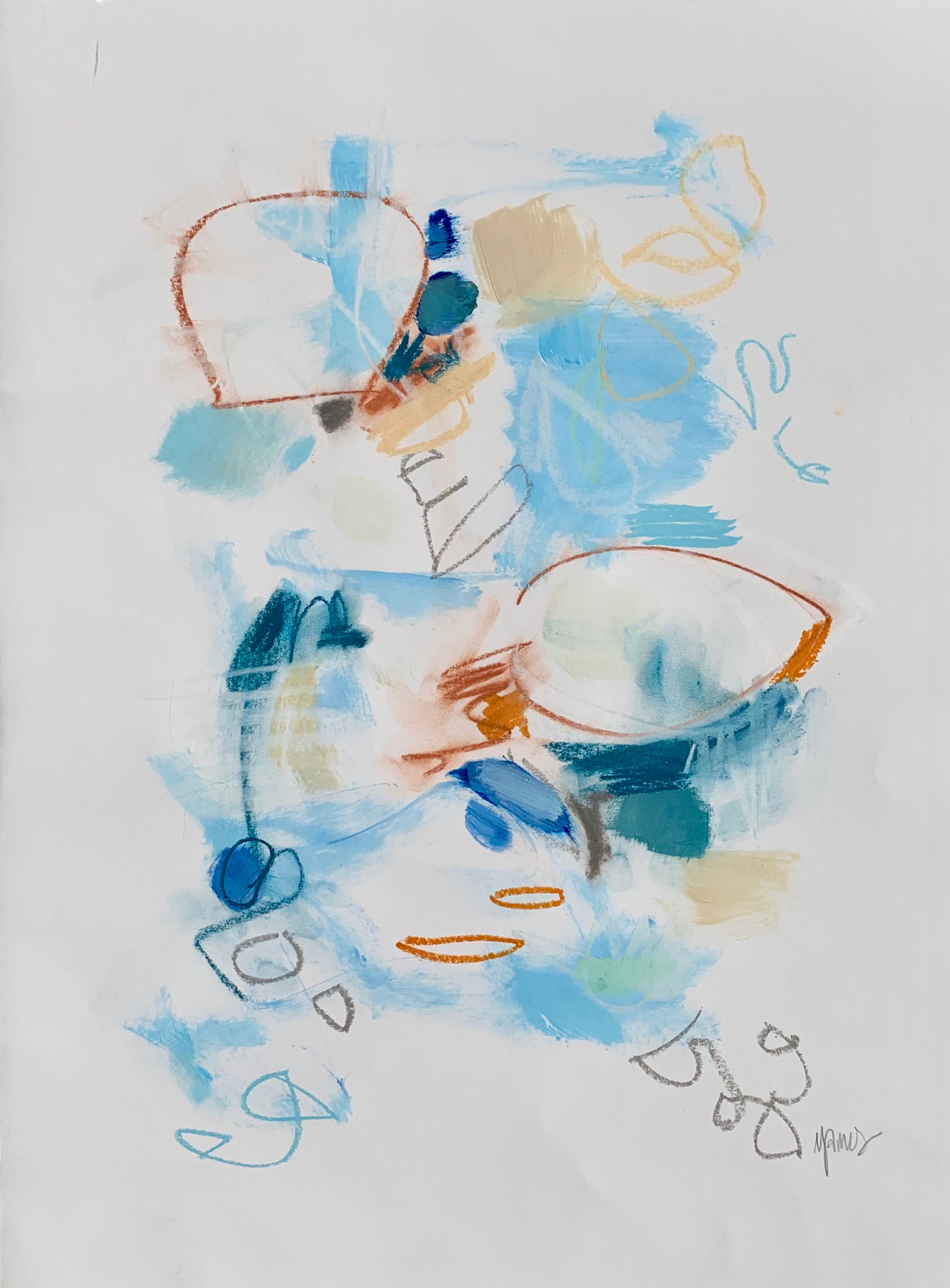 acrylic and oil pastel on deckled edge paper