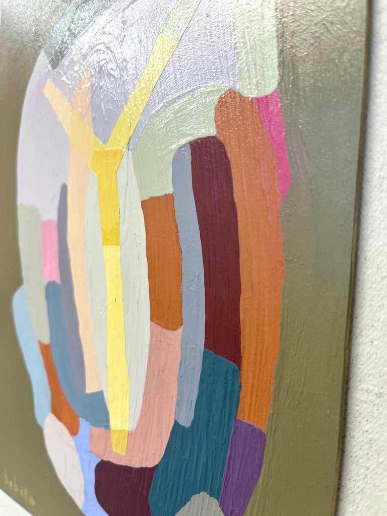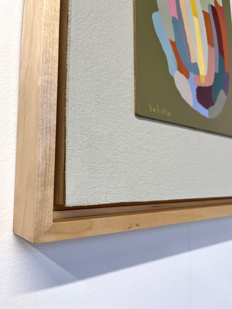 acrylic on canvas panel, in wood floater frame