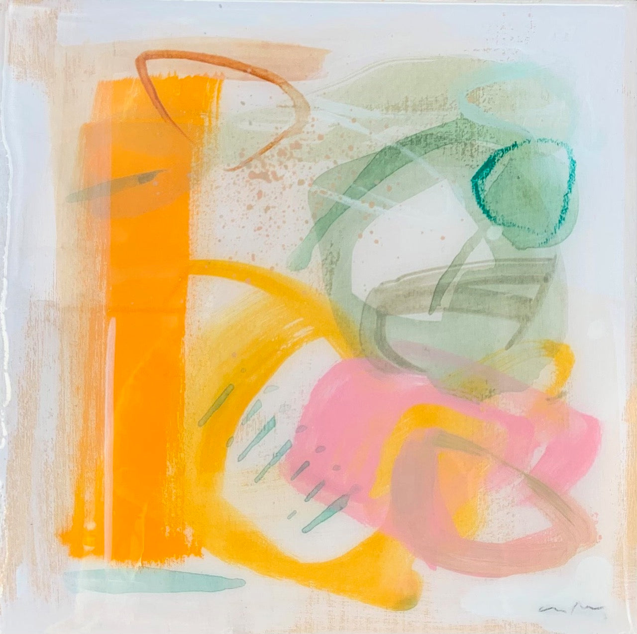 acrylic, oil pastel and resin on cradled wood