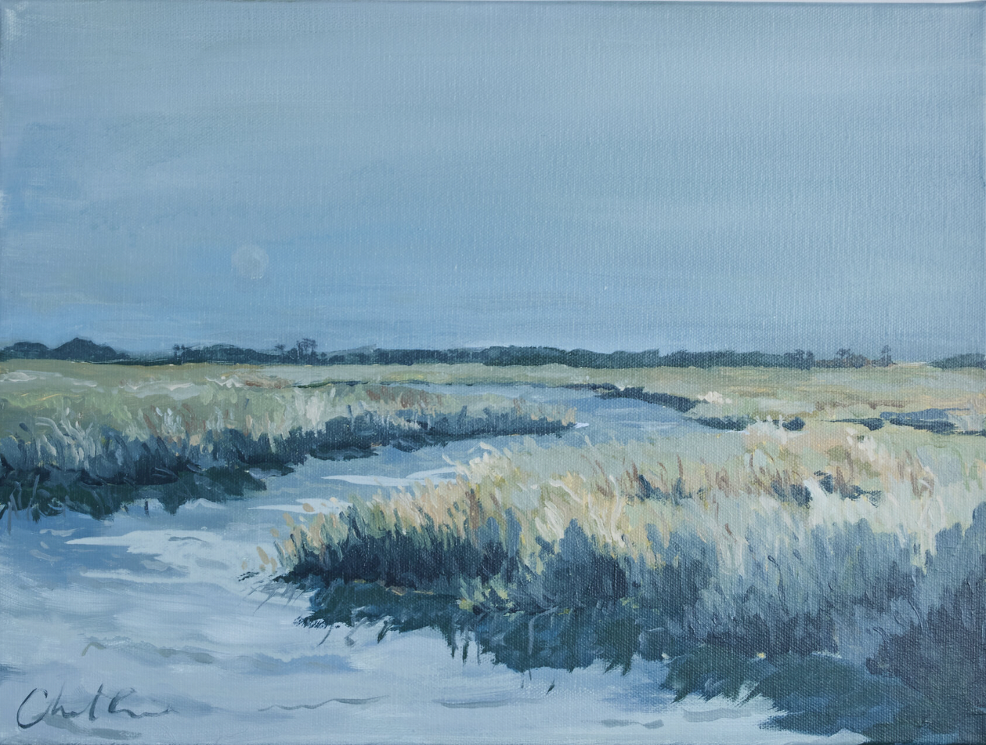 Christine hopes to create artwork that strikes the balance of fun and timeless, in an effortless manner. Composition and color harmony are a distinctive part of her work. Her palettes and subject matter are heavily influenced by her upbringing along the east coast of Florida. She hopes to bring everyday scenes to life through a new perspective and unexpected moments of color. Christine paints entirely from the three primaries (red, yellow + blue) and white. This has helped her gain a strong understanding of color theory.